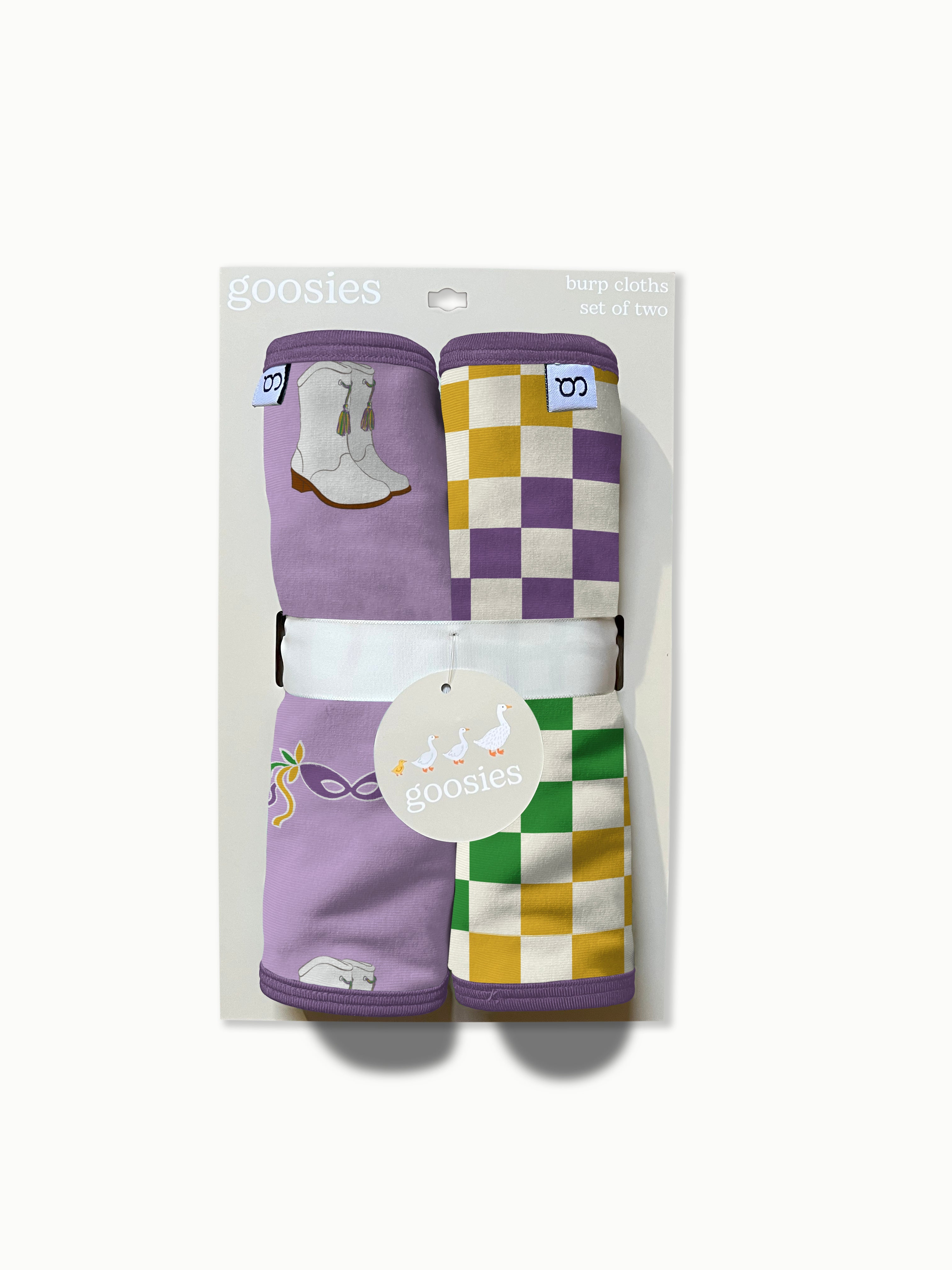 Burp Cloths Set of 2 (Mardi Gras Boots) FINAL SALE