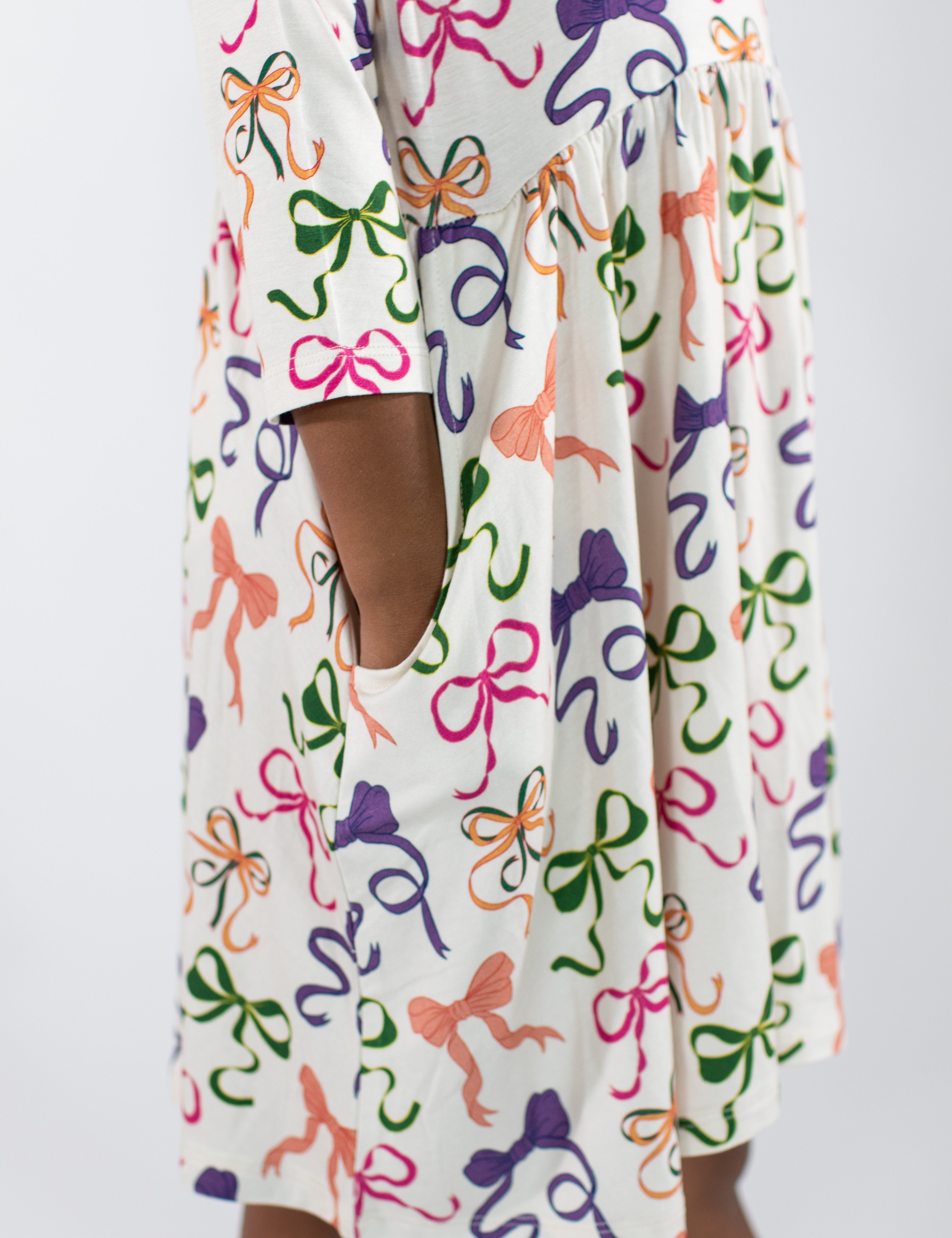 3/4 Sleeve Pocket Dress - Boots & Bows