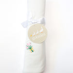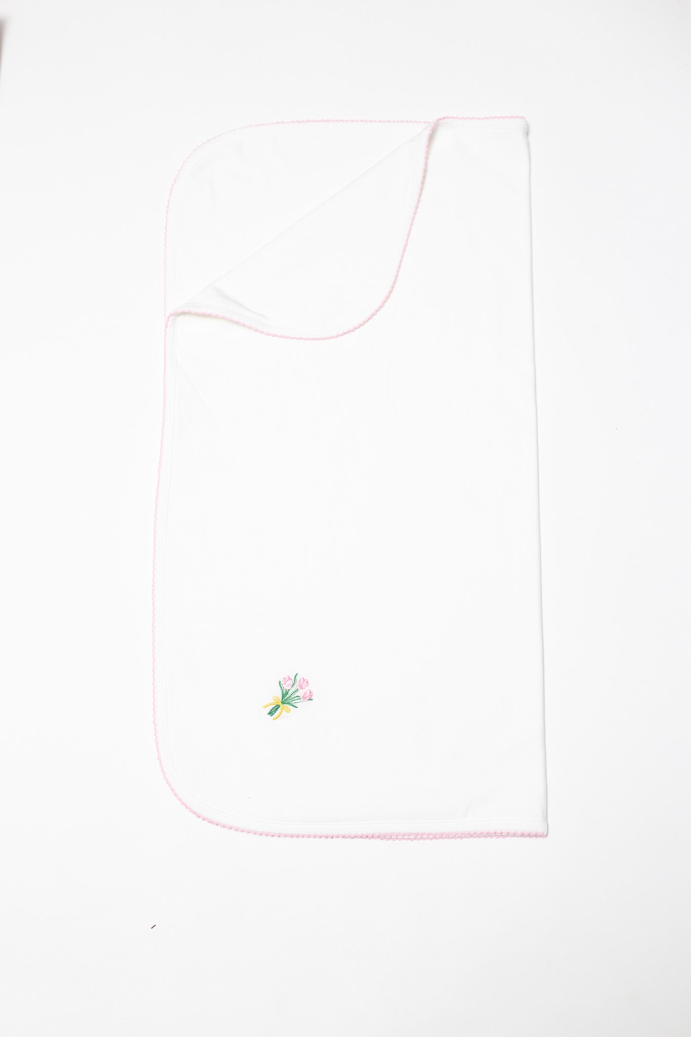 Soft, timeless, and made for the sweetest beginnings 🤍 This beautifully crafted blanket features a delicate embroidered detail, adding a gentle heirloom touch to an everyday essential. Finished with subtle picot trim and tied with a soft ribbon, it’s as giftable as it is practical.