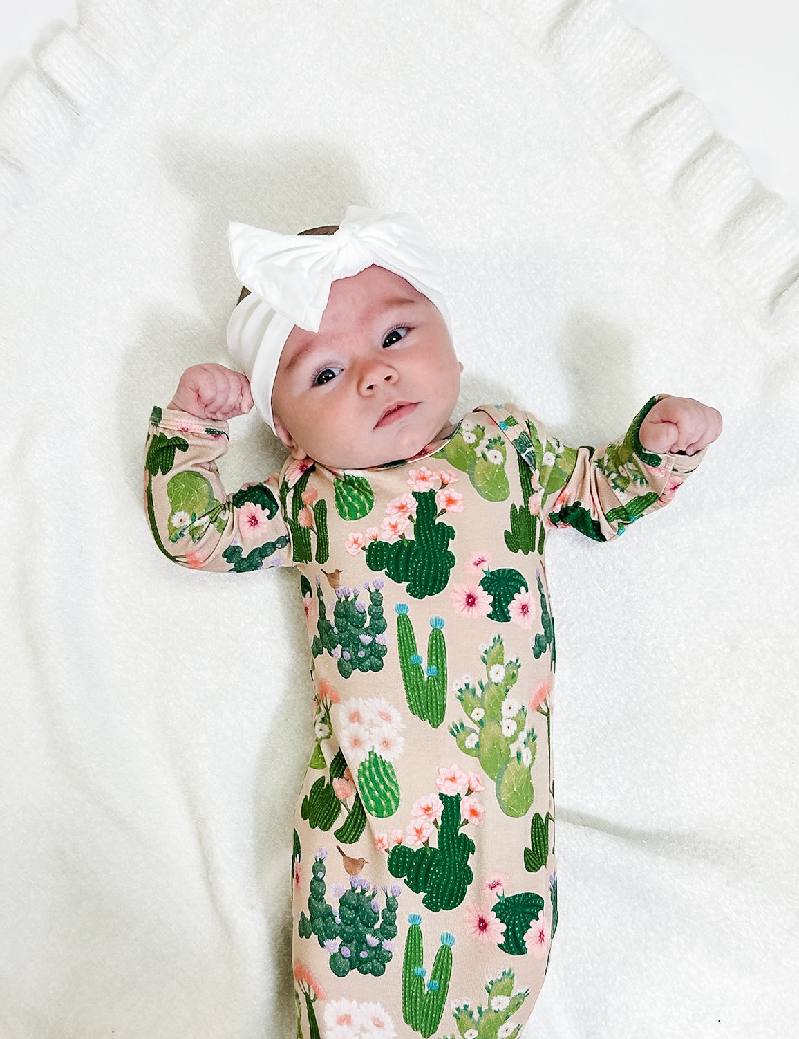 Knotted Infant Gown - Cactus Blooms (0-3 mo) FINAL SALE