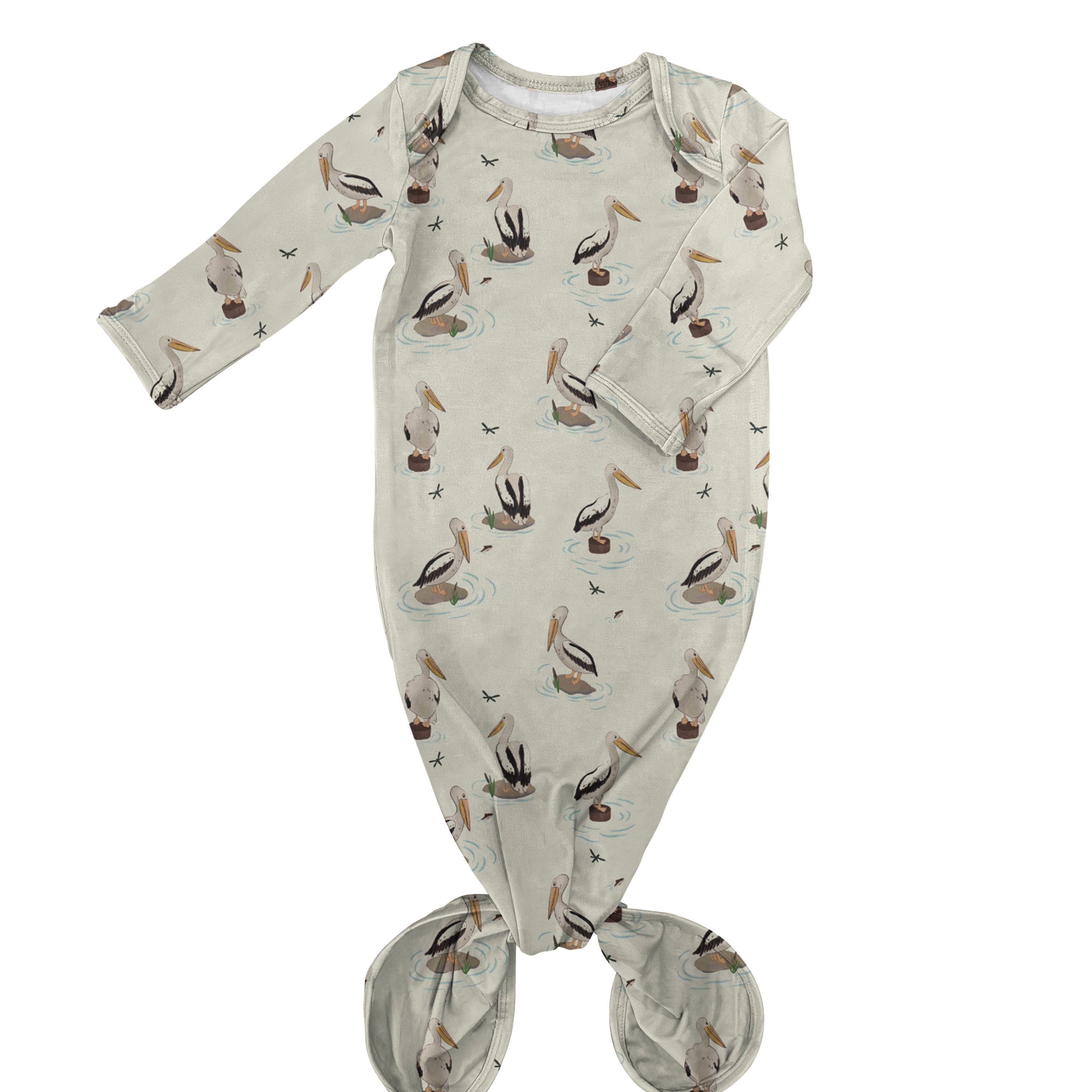 Knotted Infant Gown - Pelicans
