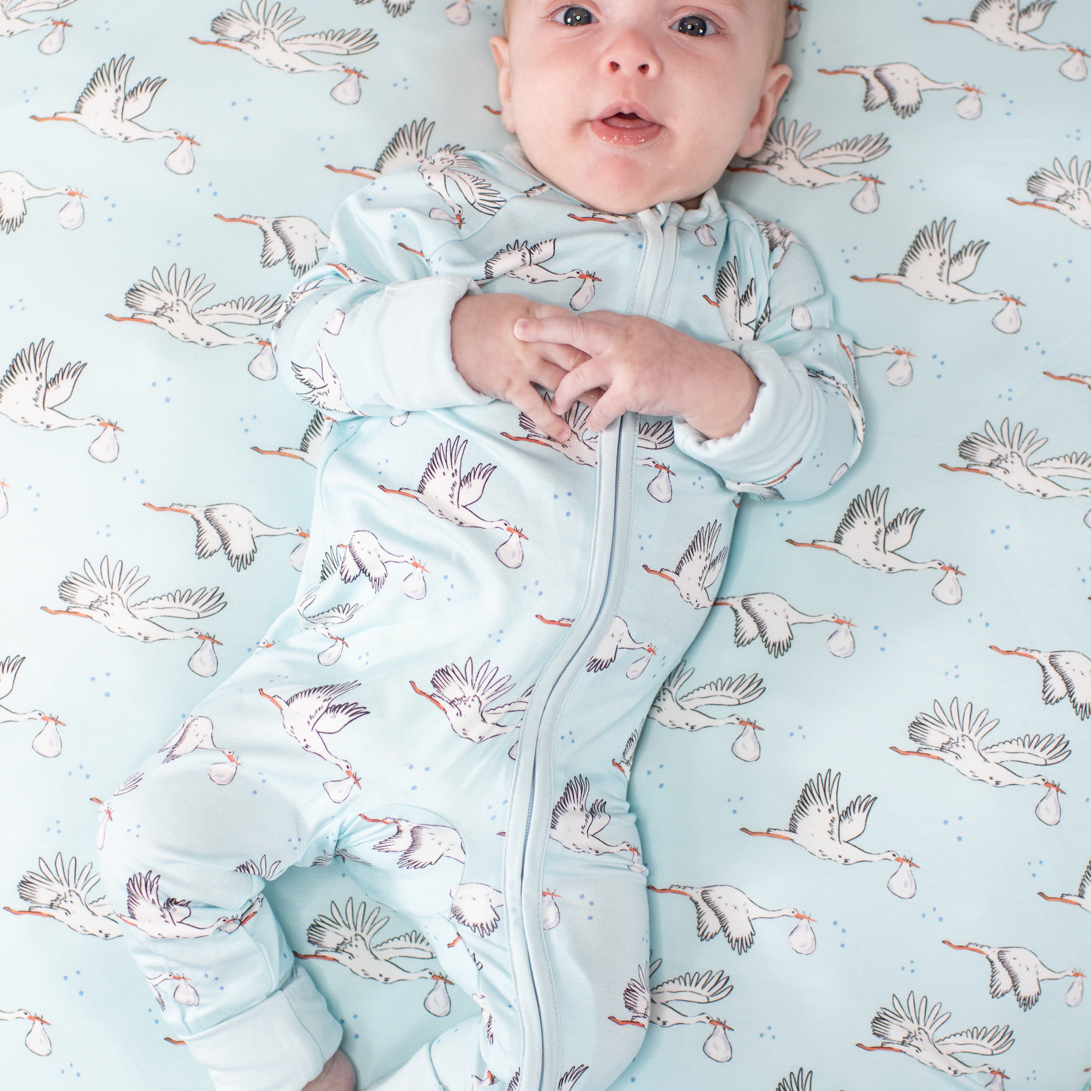 Convertible Zip Pajamas - Storks Blue (3-6mo only)
