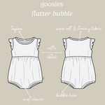 Soft, sweet, and made for sunshine days — our Flutter Bubble is the perfect one-piece for your little one’s first adventures. Designed with delicate flutter sleeves and gentle stretch, it keeps baby comfy while looking oh-so-darling.