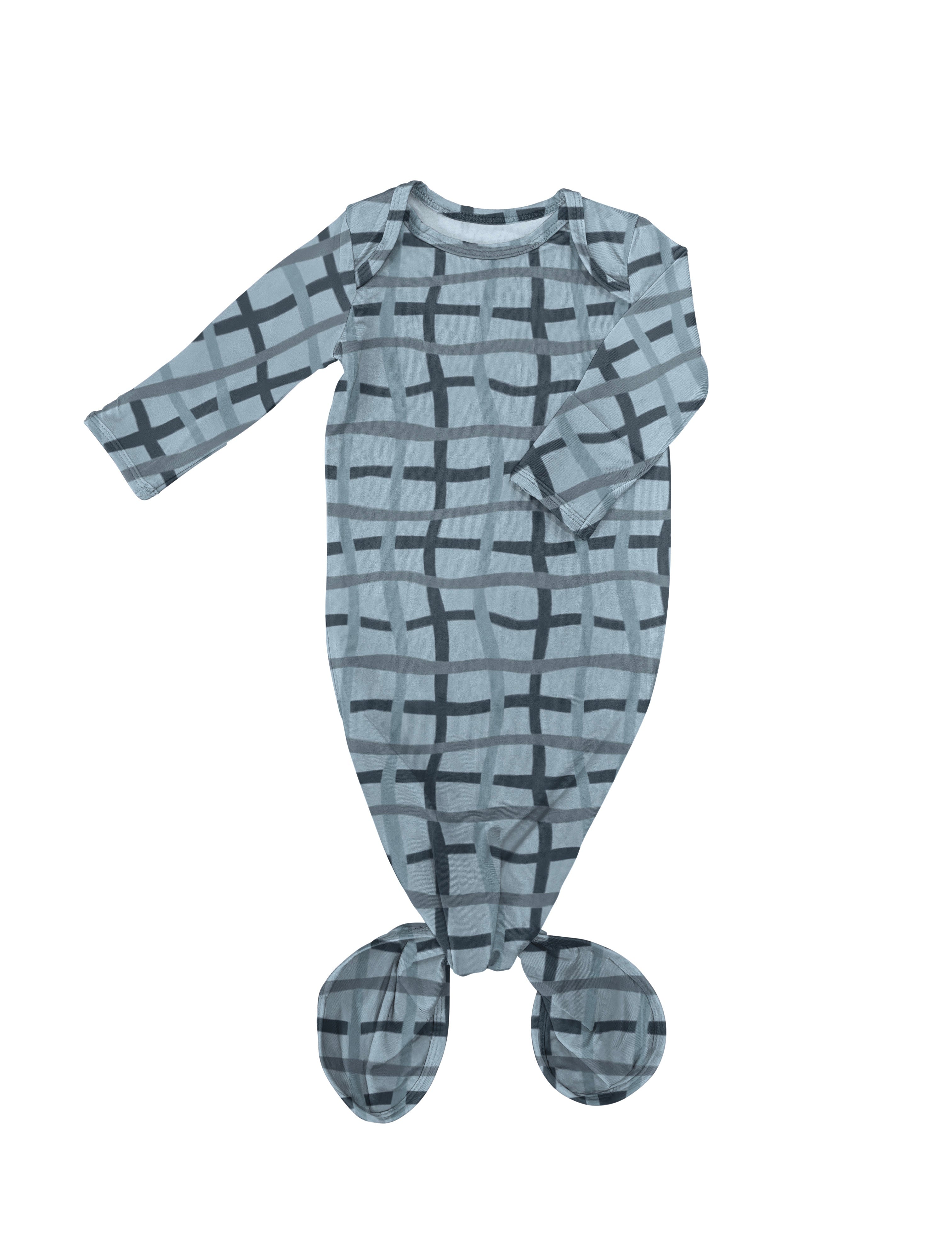Knotted Infant Gown - Blue Wavy Plaid (FINAL SALE)