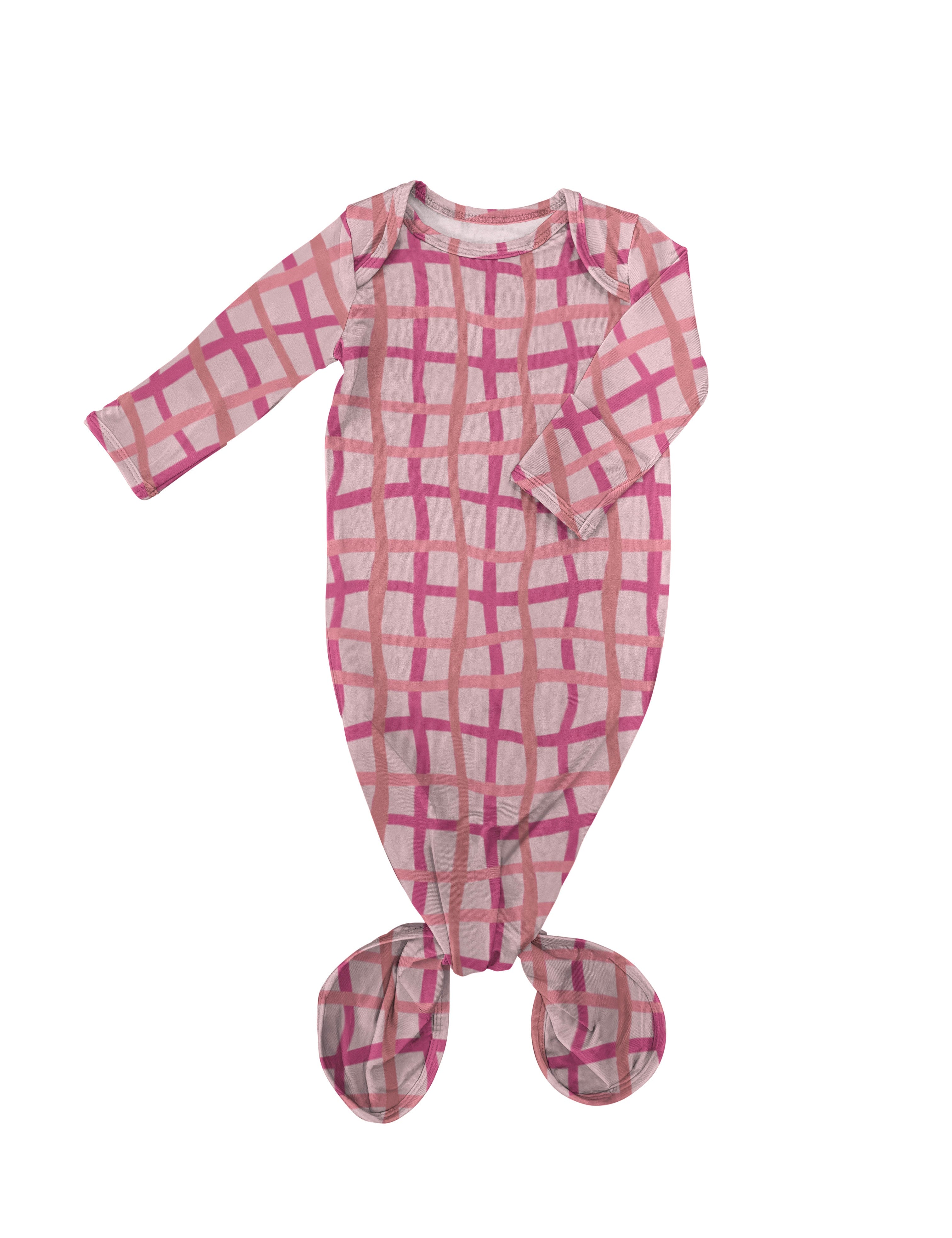 Knotted Infant Gown - Pink Wavy Plaid (FINAL SALE)