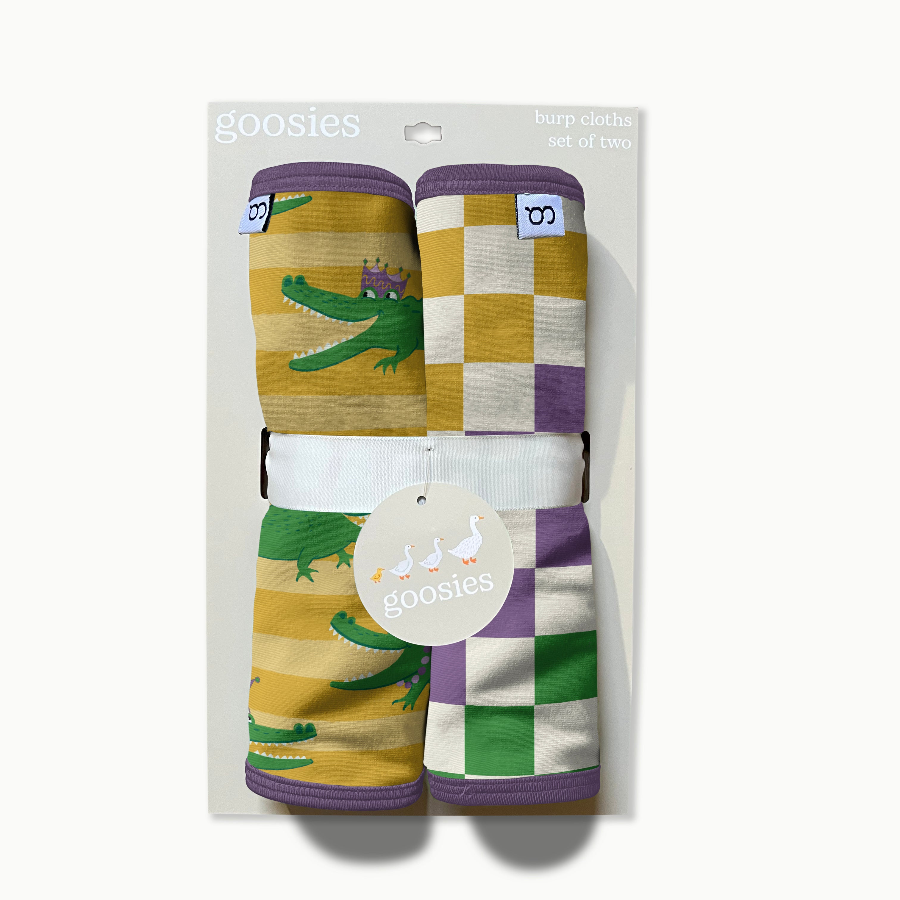 Burp Cloths Set of 2 (Mardi Gras Gators)