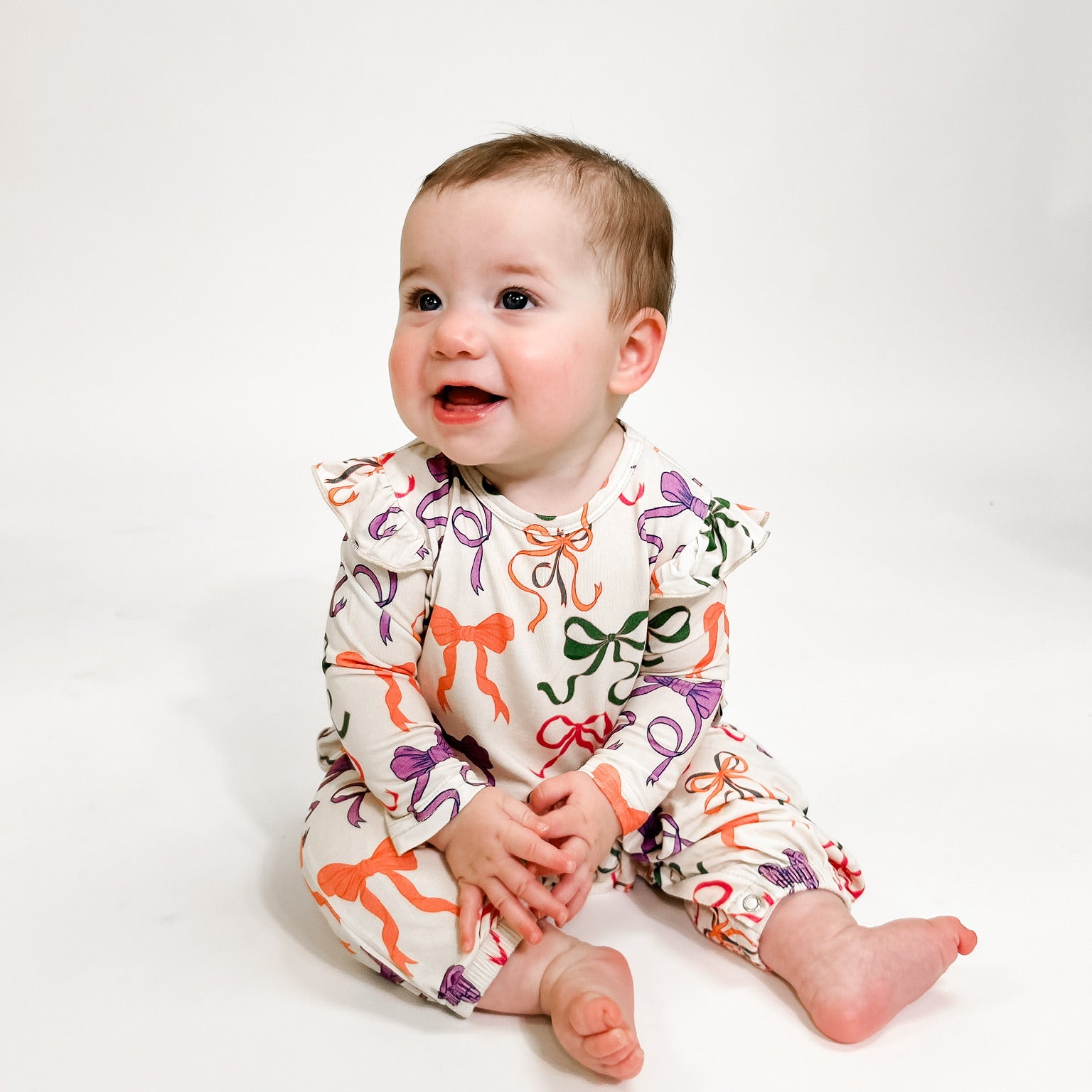 Long Sleeve Flutter Romper- Bows