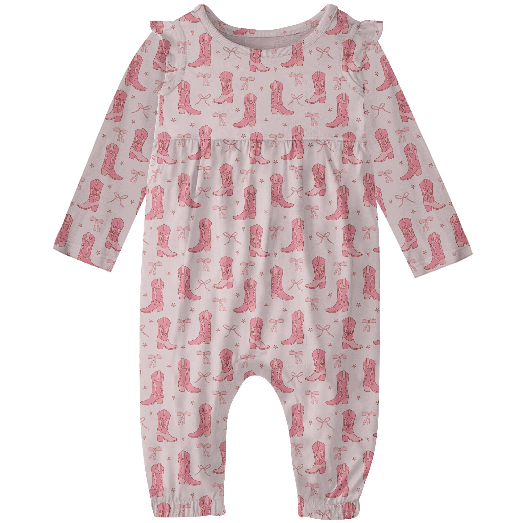 Long Sleeve Flutter Romper- Boots & Bows