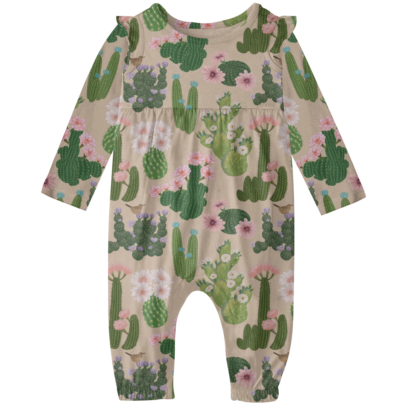 Long Sleeve Flutter Romper- Cactus Blooms