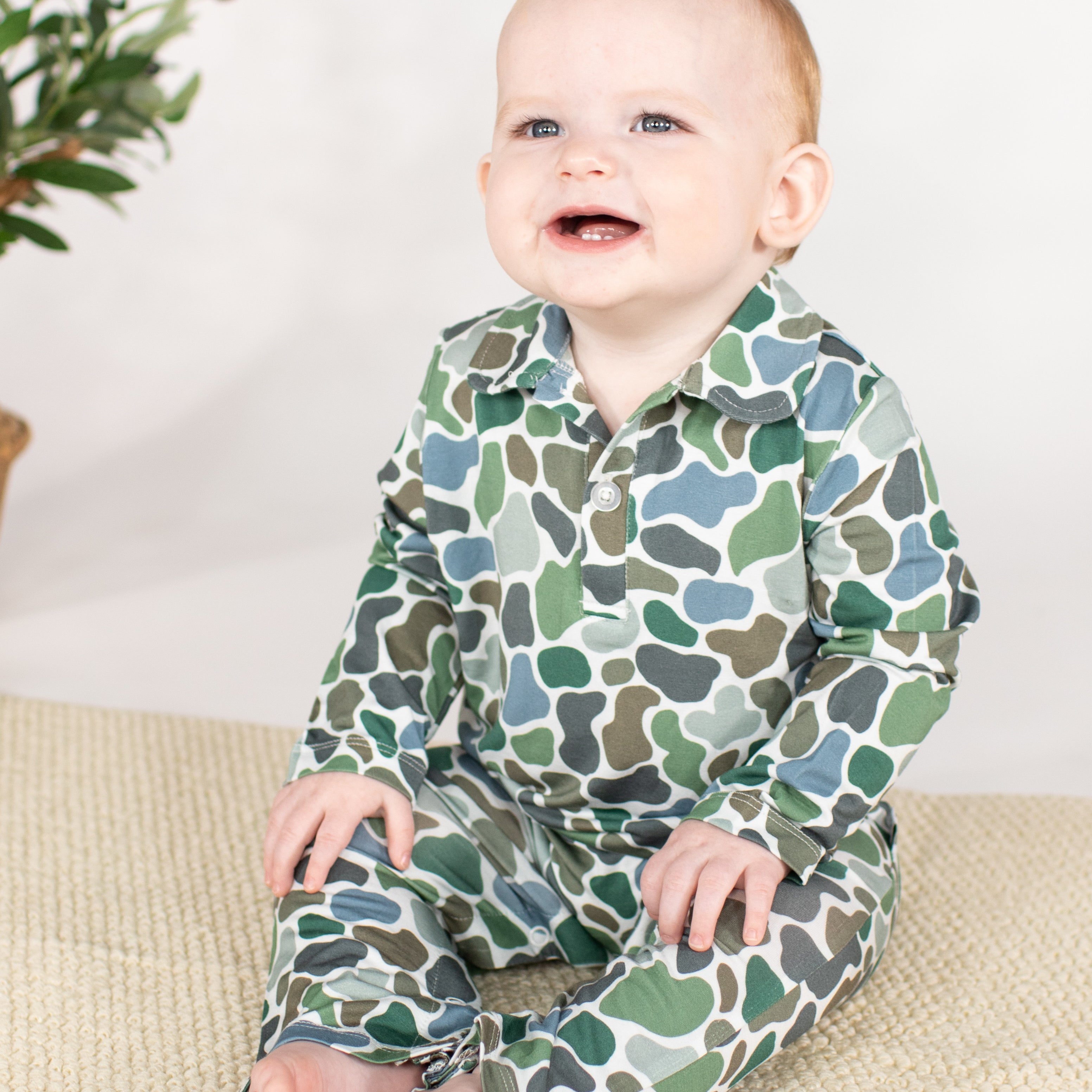 Long Sleeve Polo Romper-Pebble Camo