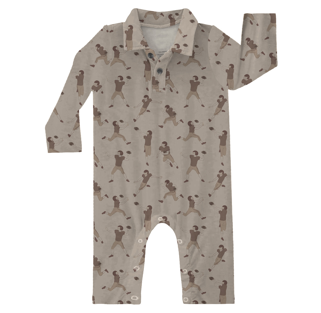 Long Sleeve Polo Romper- Football