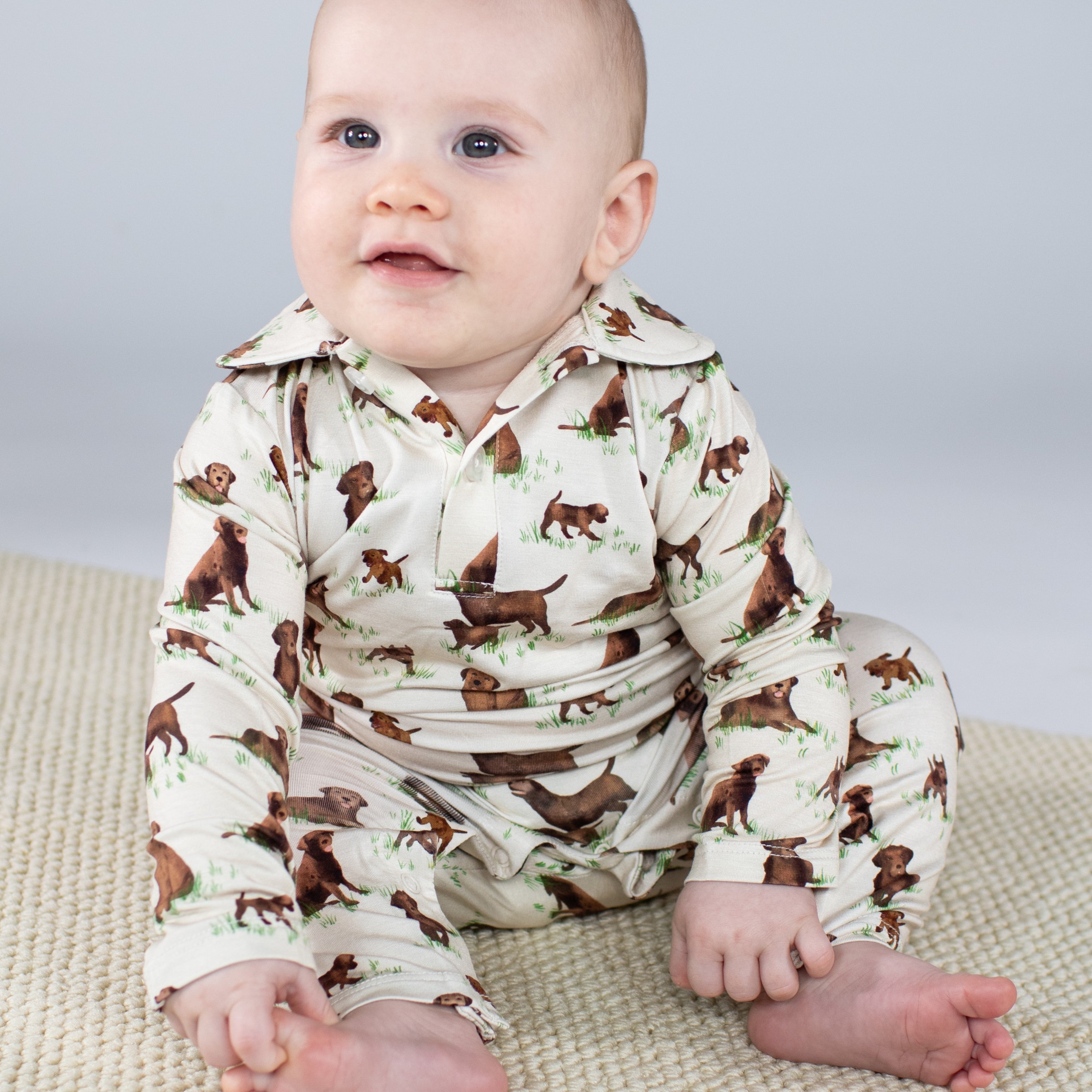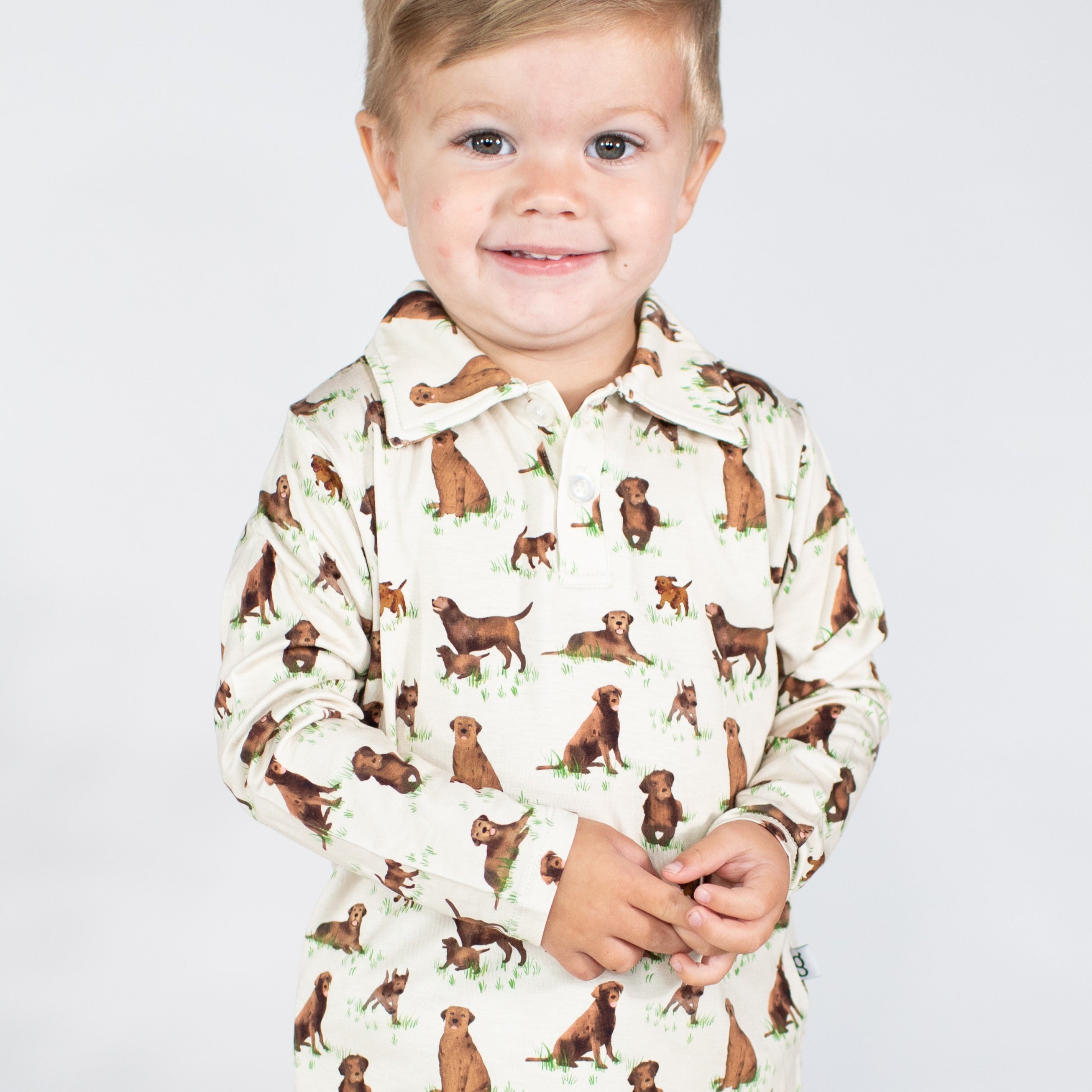 Long Sleeve Polo Romper-Labradors