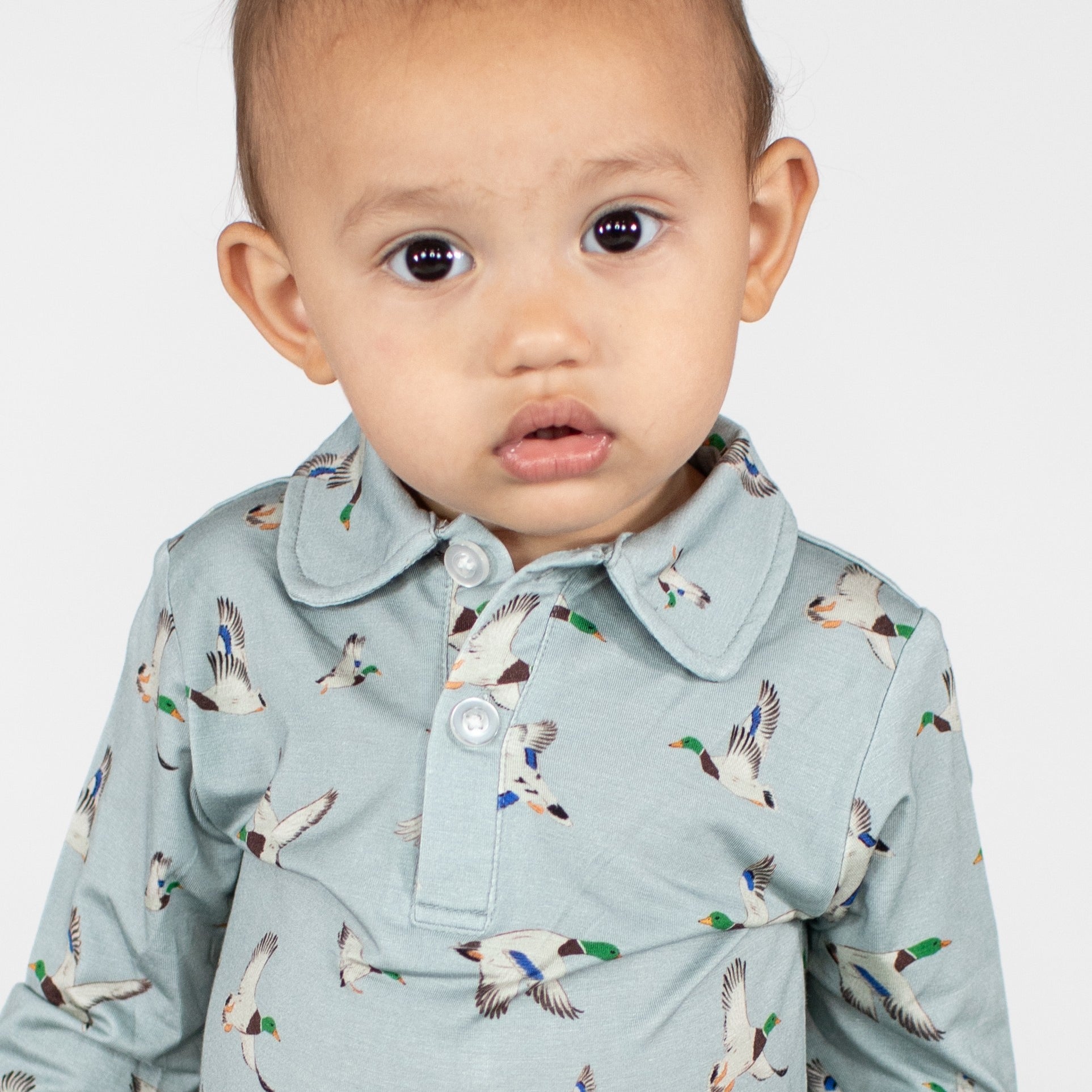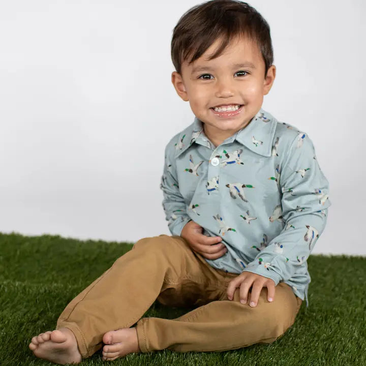 Long Sleeve Polo Romper-Mallards