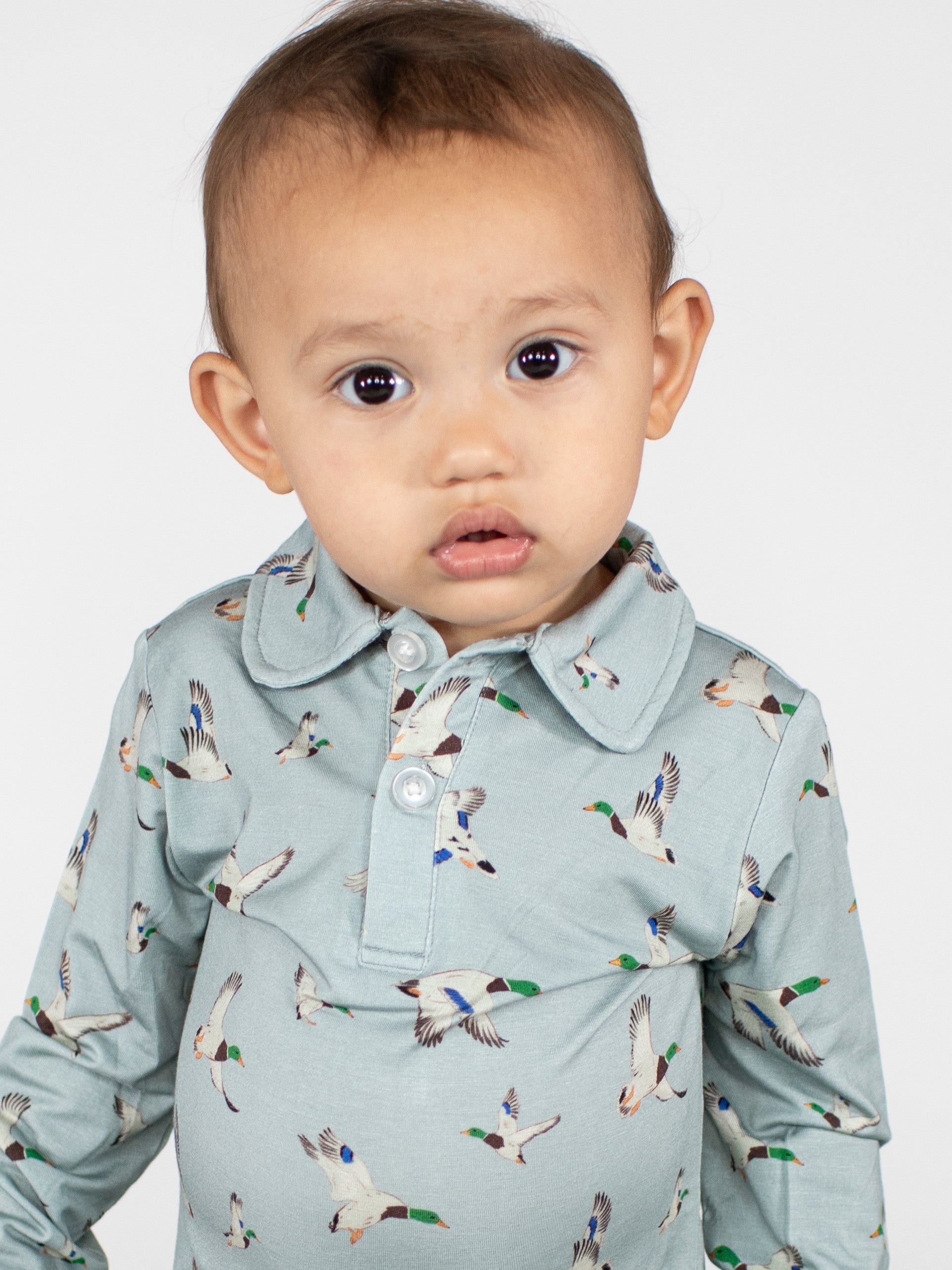 Long Sleeve Polo Romper-Mallards