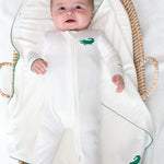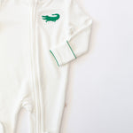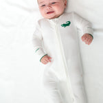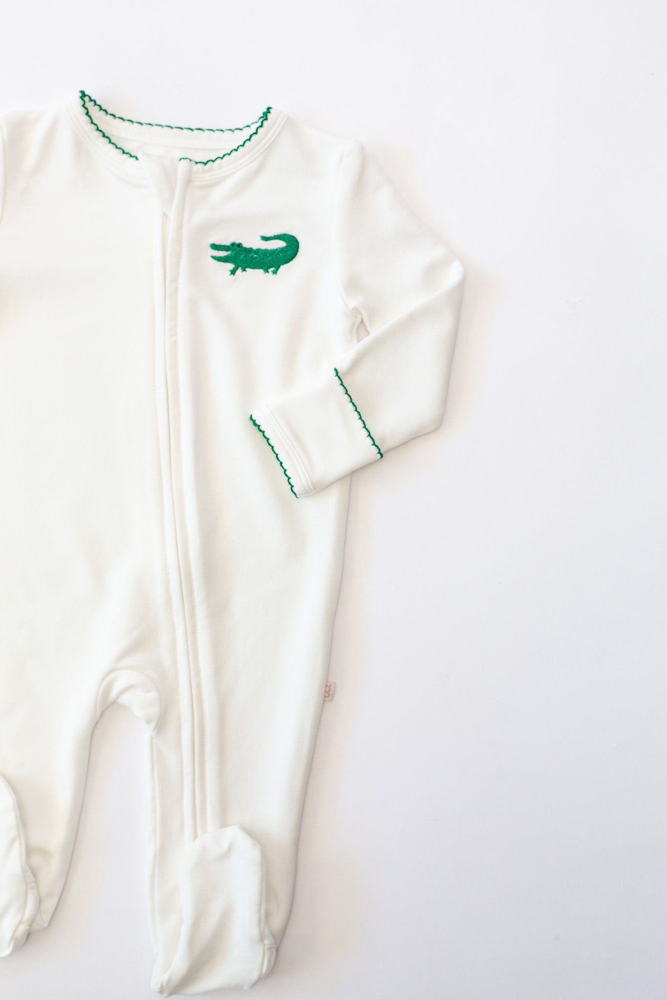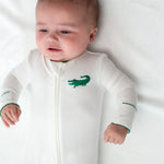 Sweet, soft, and made for snuggles 🤍 This classic white footed zip romper features the most charming embroidered detail at the chest and accented with delicate contrast picot trim along the neckline and cuffs. Designed for cozy days and peaceful nights, the smooth zip closure makes diaper changes quick and fuss-free.