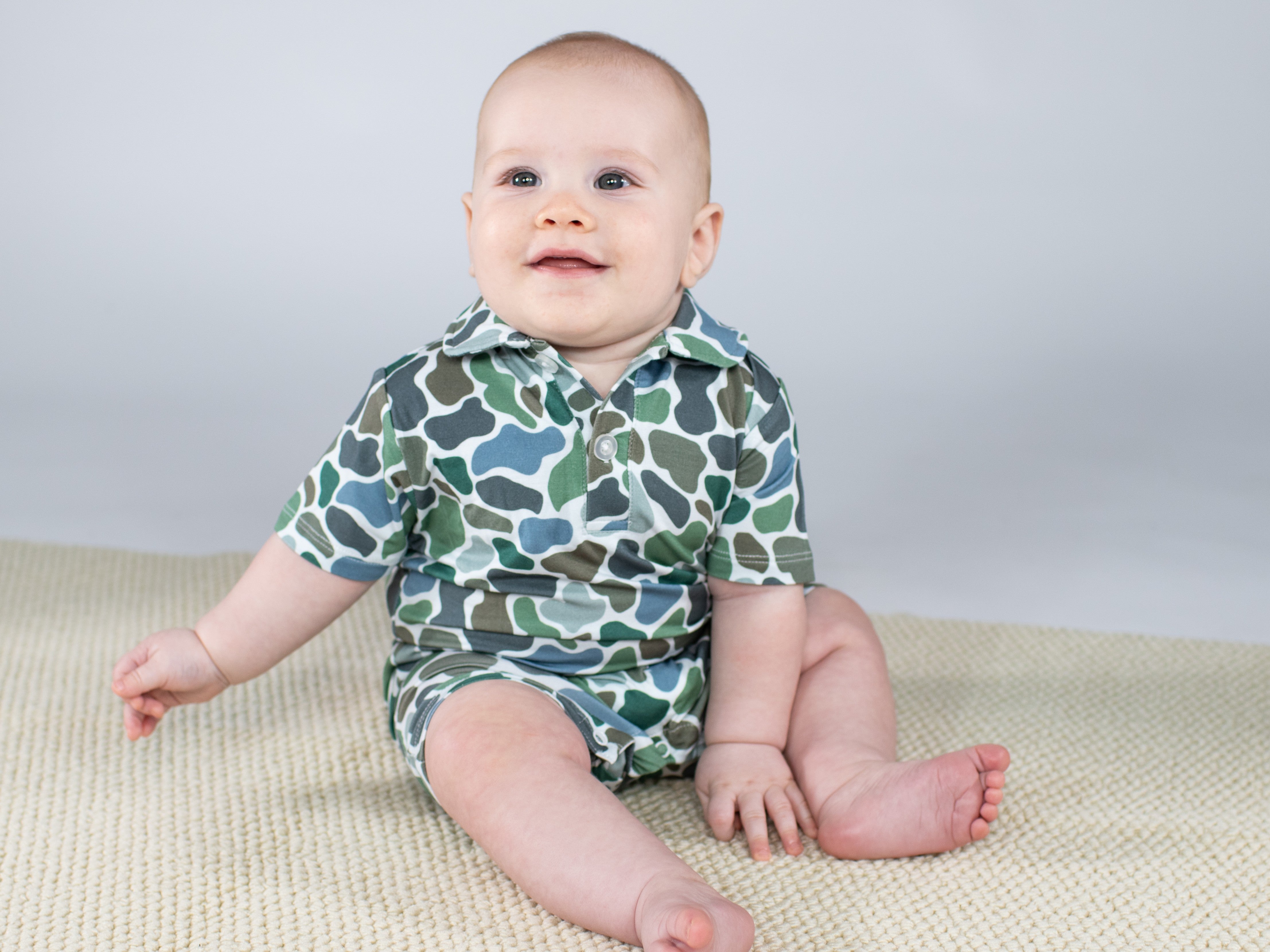 LS Polo Romper - Evergreen Camo