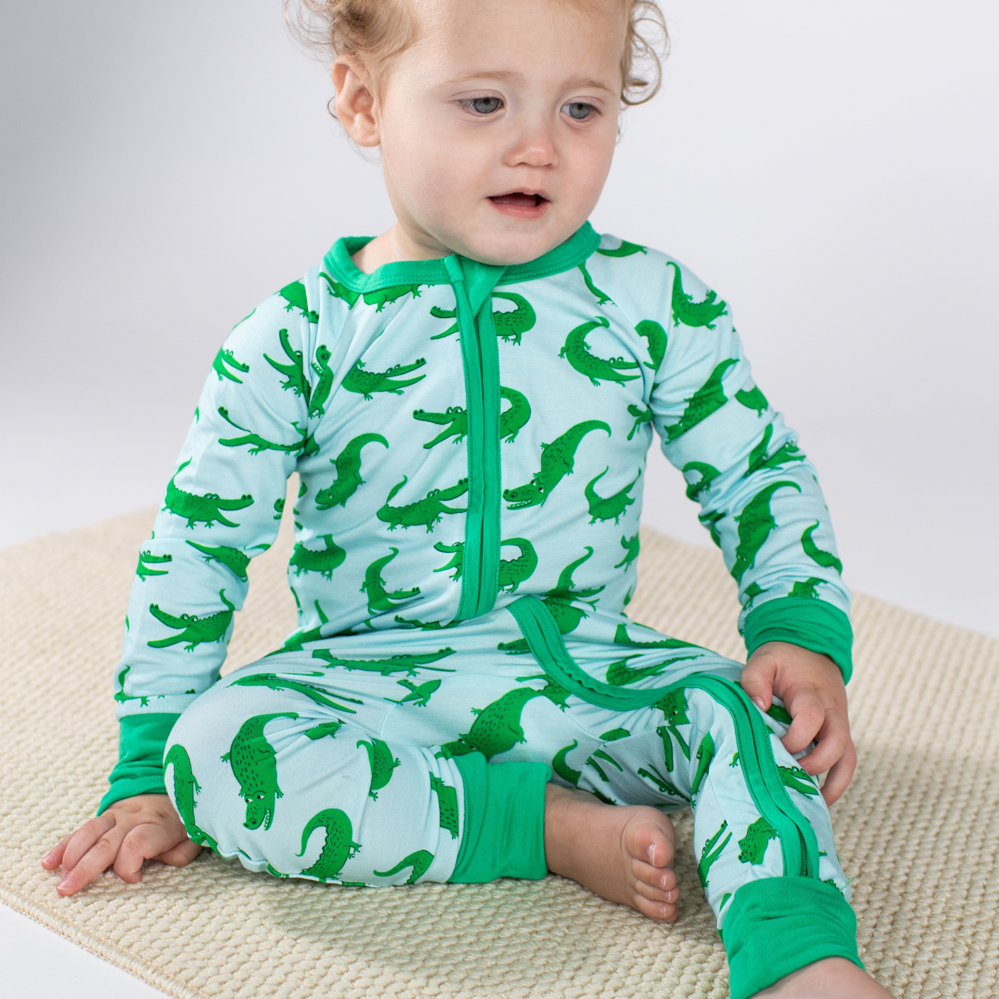 Convertible Zip Pajamas - Blue Alligators