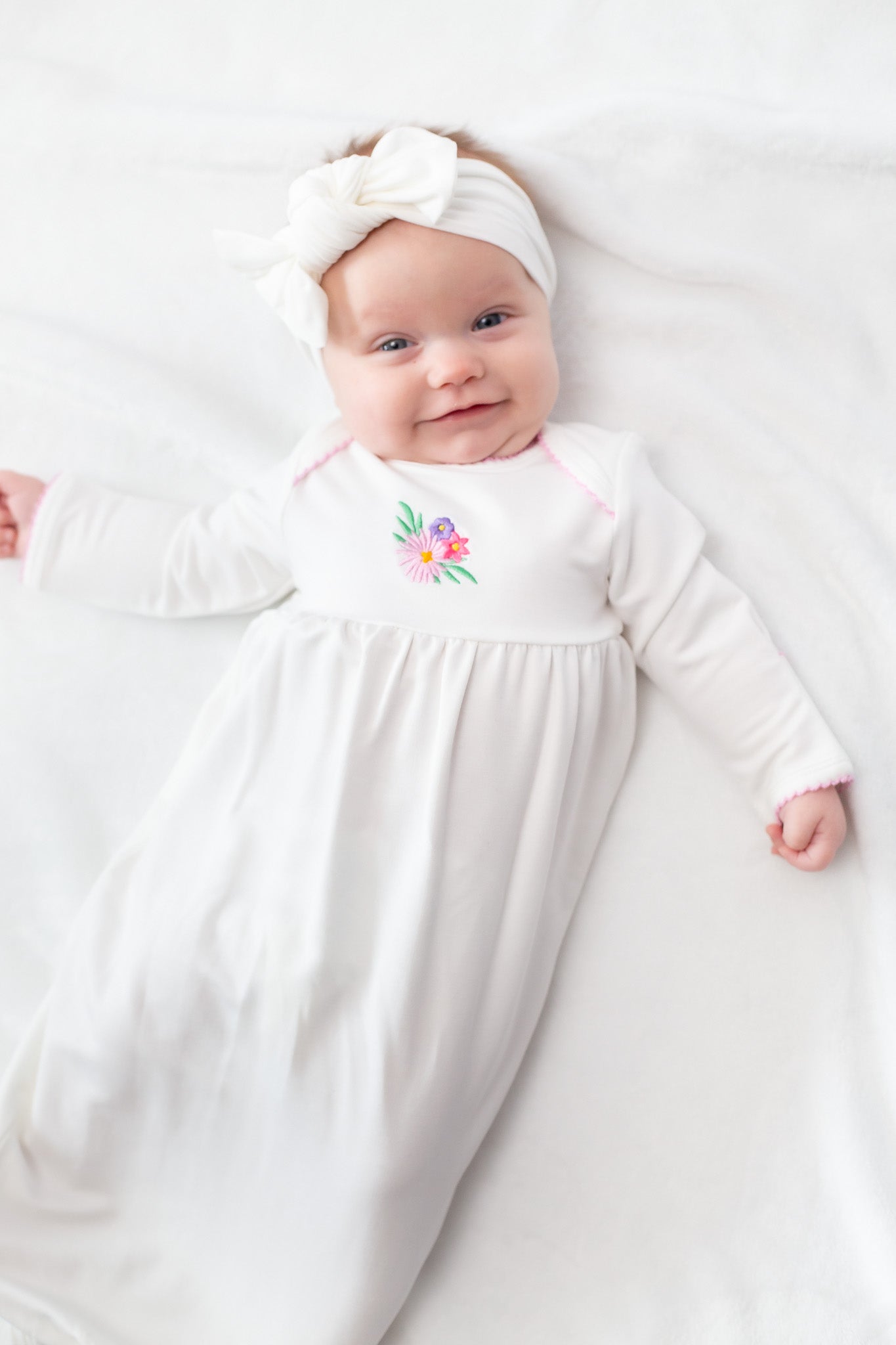 Ideal for newborns, this gown combines everyday practicality with classic style, making it a thoughtful baby shower gift or a sweet coming-home outfit.