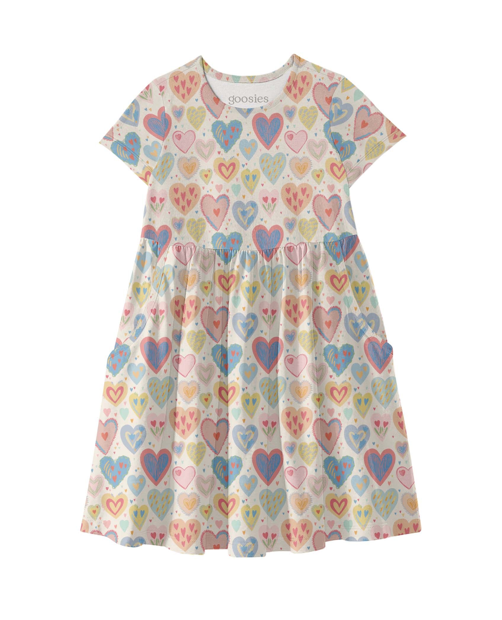The relaxed fit and functional side pockets make it as practical as it is adorable—whether your little one is twirling, running, or stashing treasures.