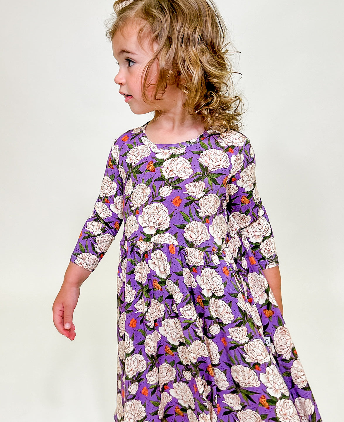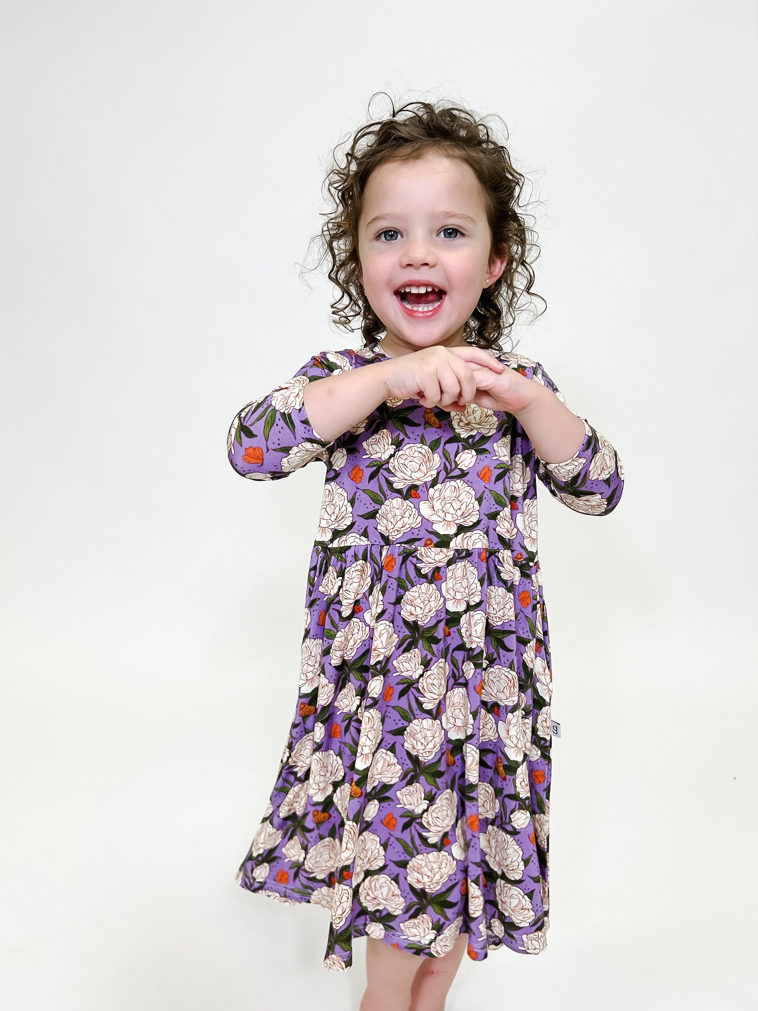 3/4 Sleeve Pocket Dress - Peonies (FINAL SALE)