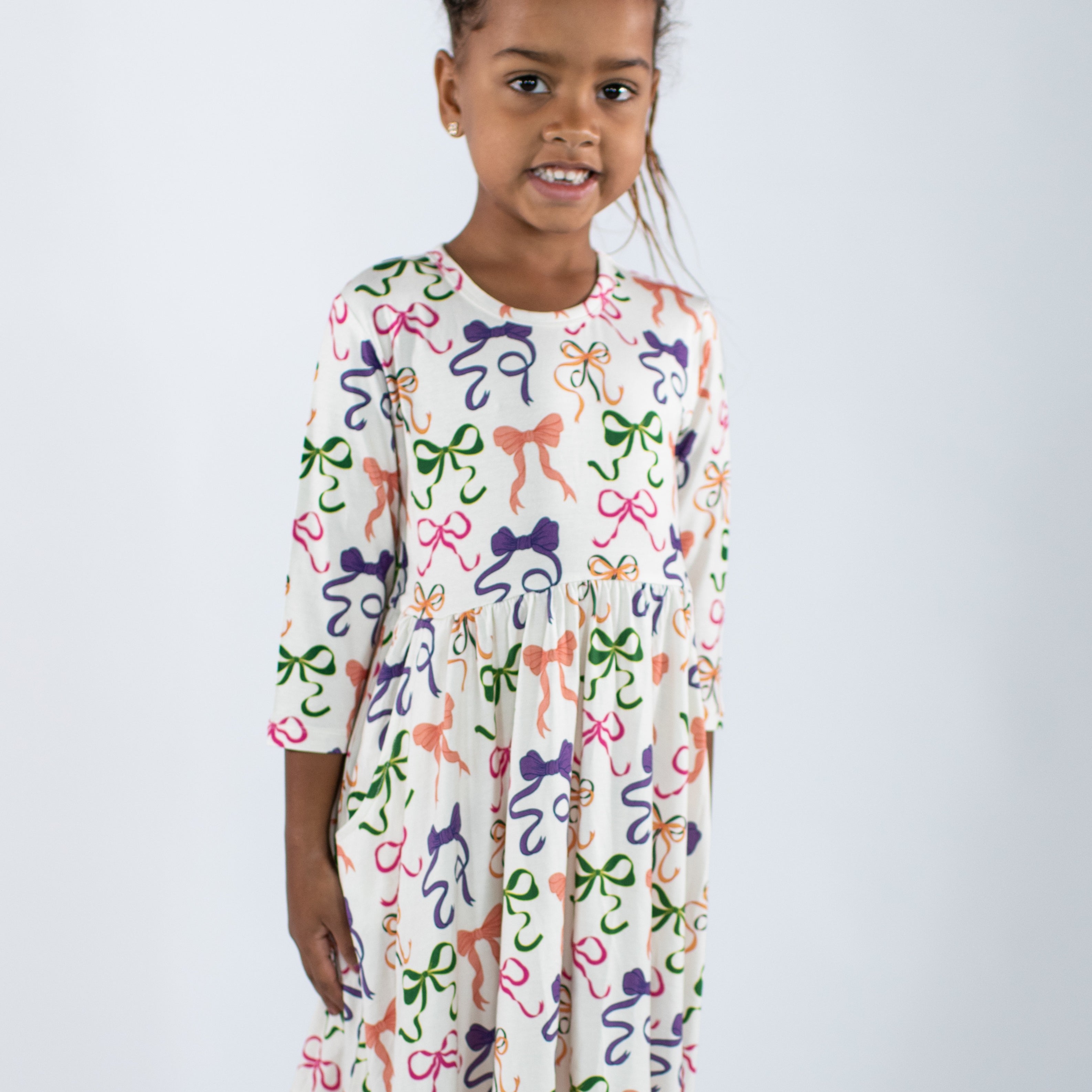 3/4 Sleeve Pocket Dress - Bows