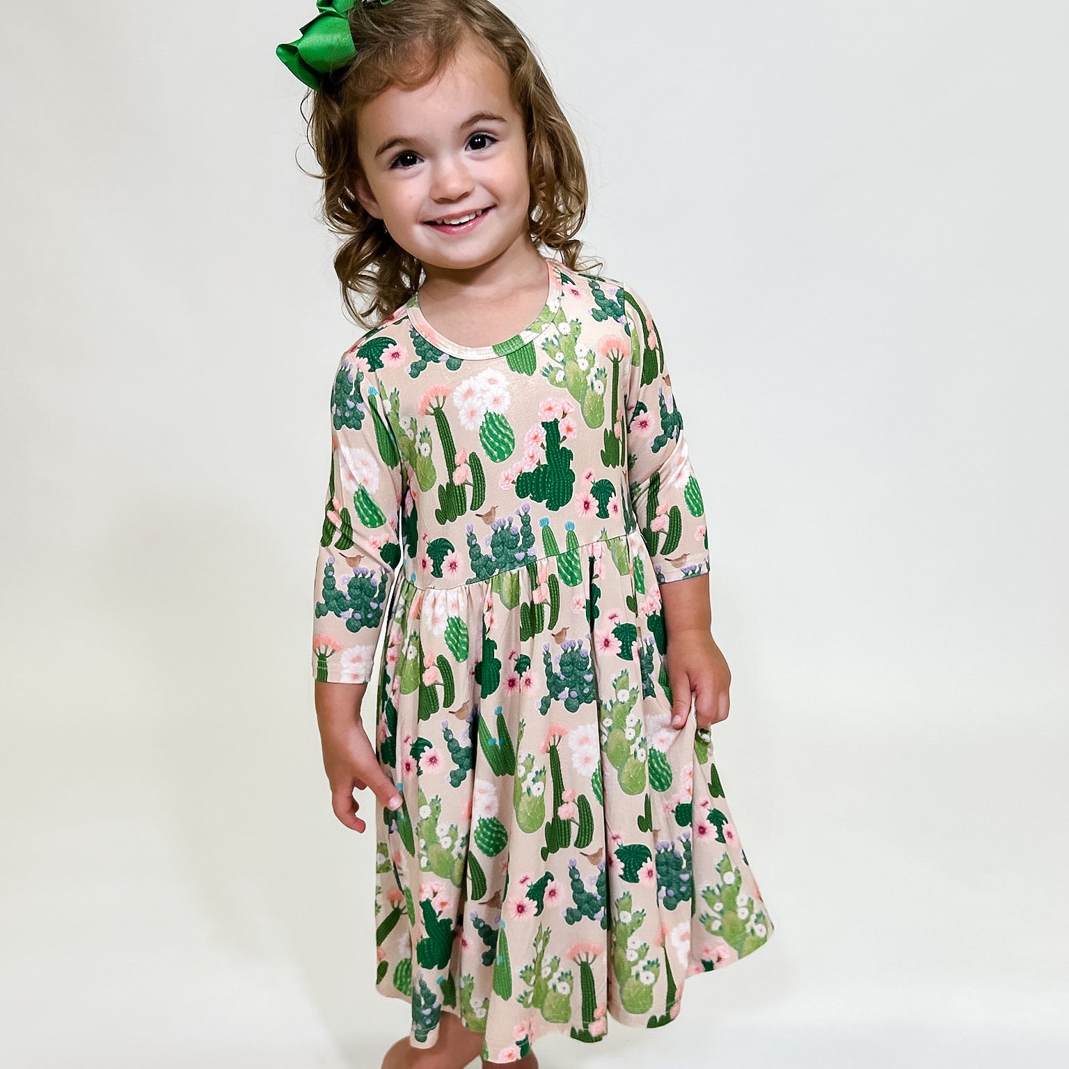 3/4 Sleeve Pocket Dress - Cactus Blooms