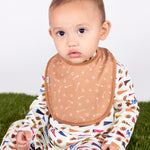 Each bib features a buttery-soft bamboo-spandex front that’s gentle on baby’s skin, paired with a highly absorbent terrycloth backing made from a poly-cotton blend to catch spills and dribbles with ease. The adjustable neckline ensures a perfect fit that grows with your little one from infant to toddler.