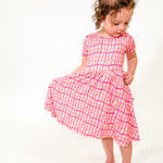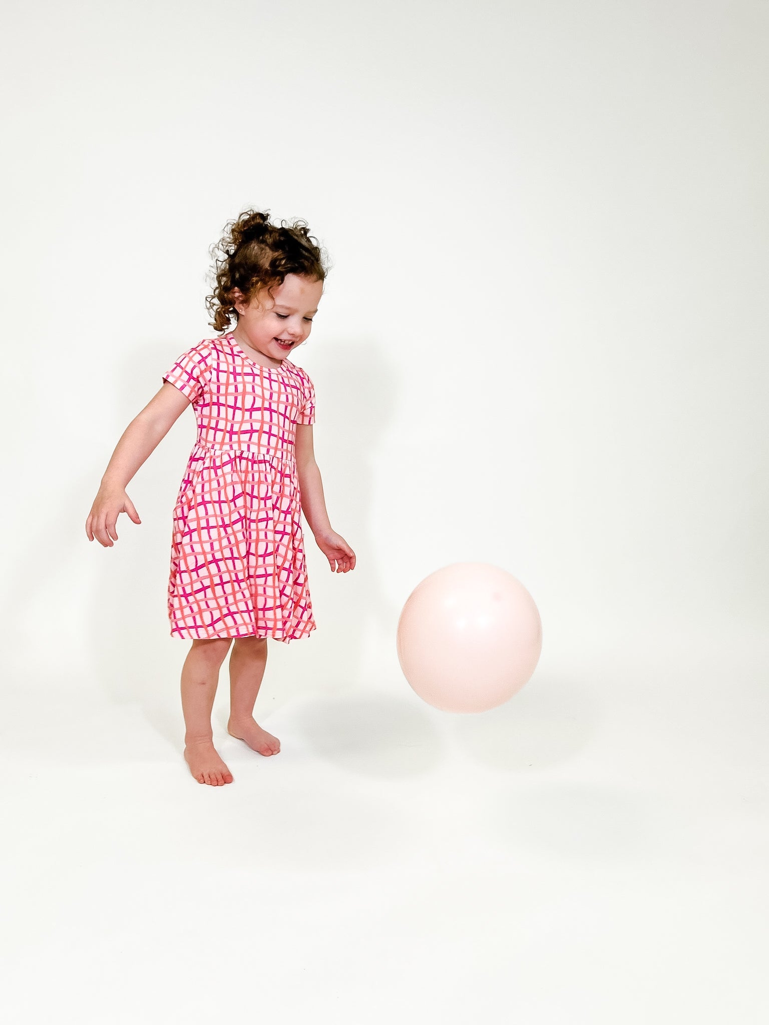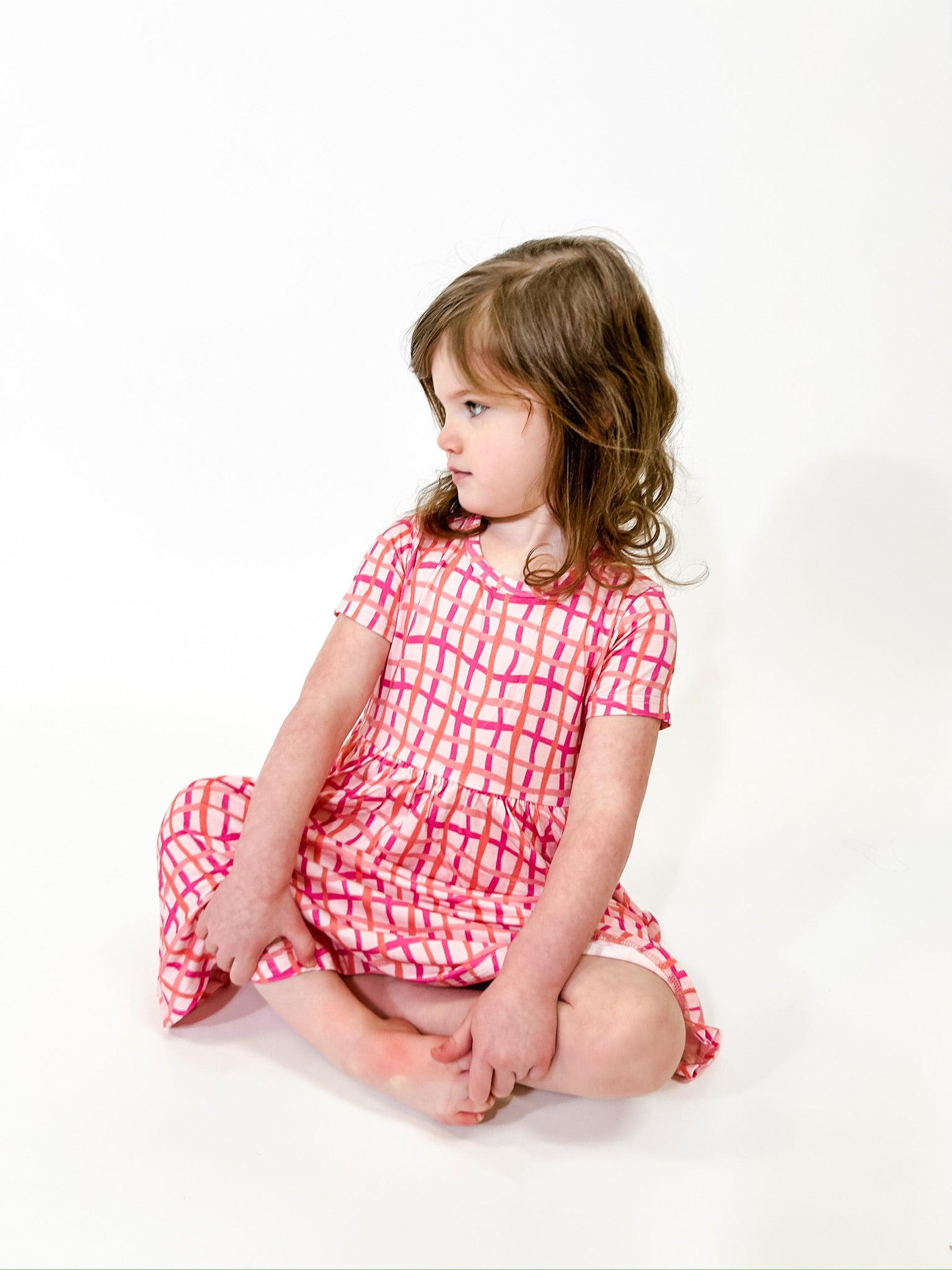 Short Sleeve Pocket Dress - Pink Wavy Plaid (FINAL SALE)