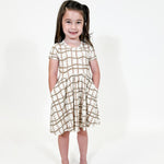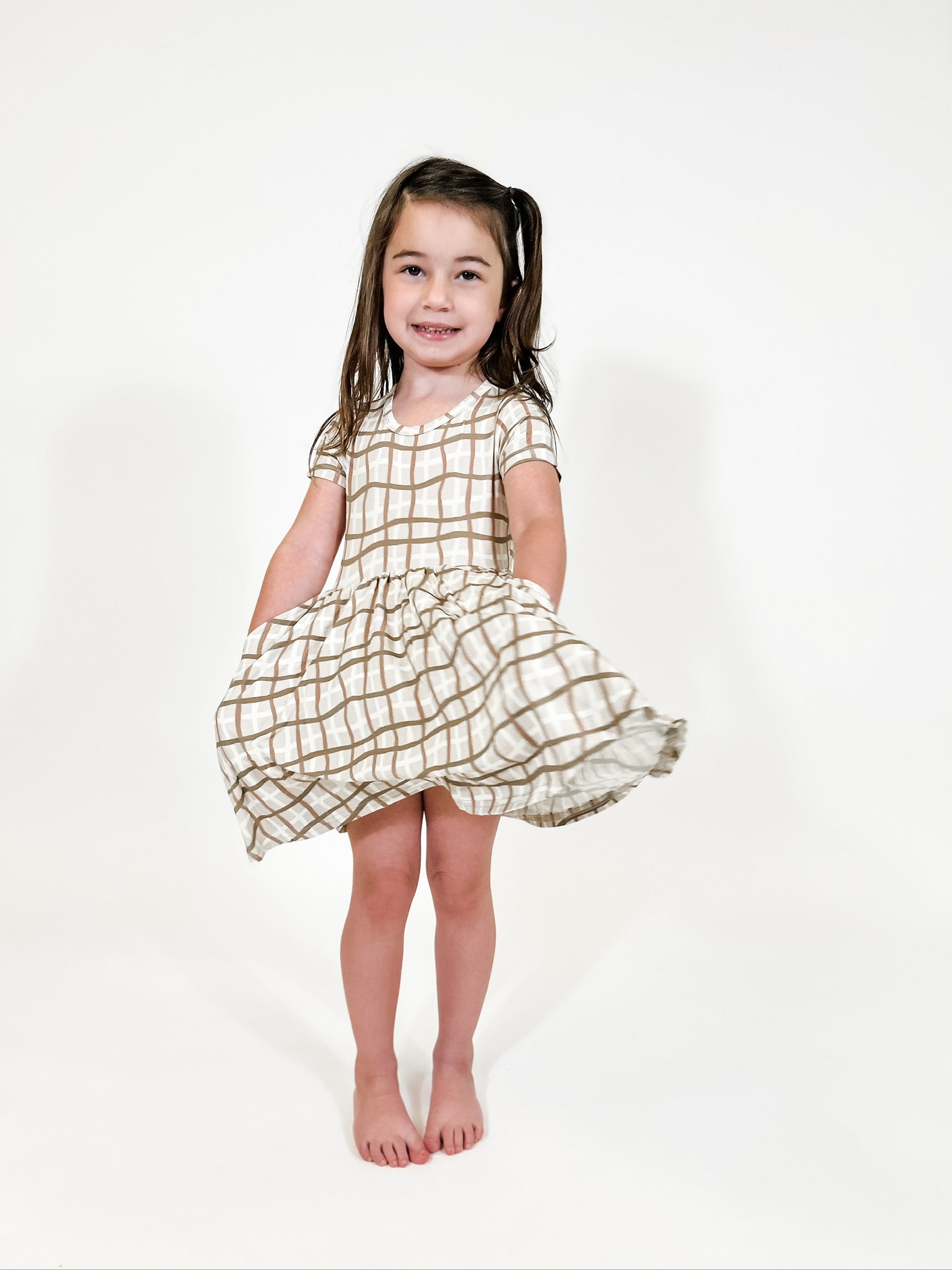 Short Sleeve Pocket Dress - Tan Wavy Plaid (FINAL SALE)