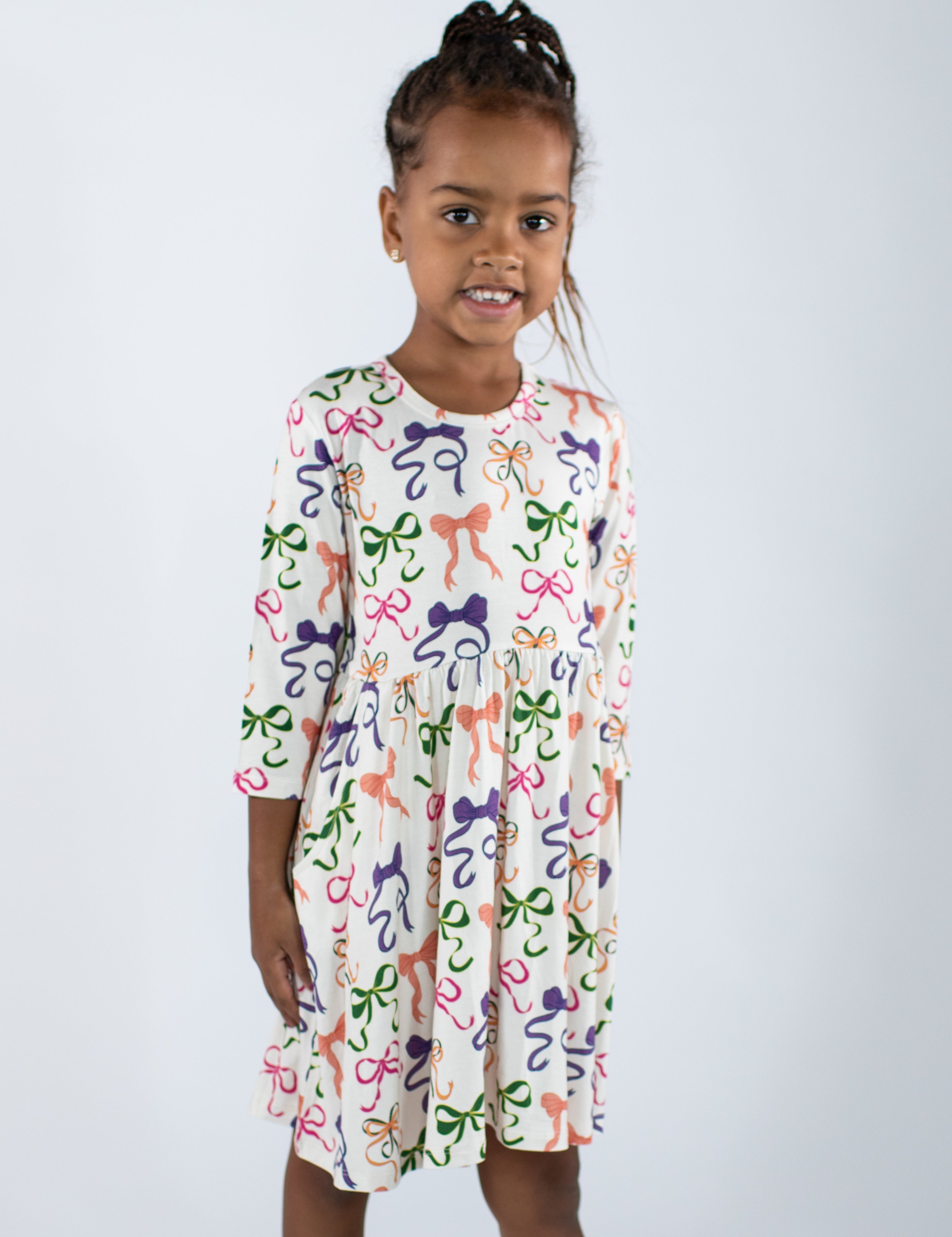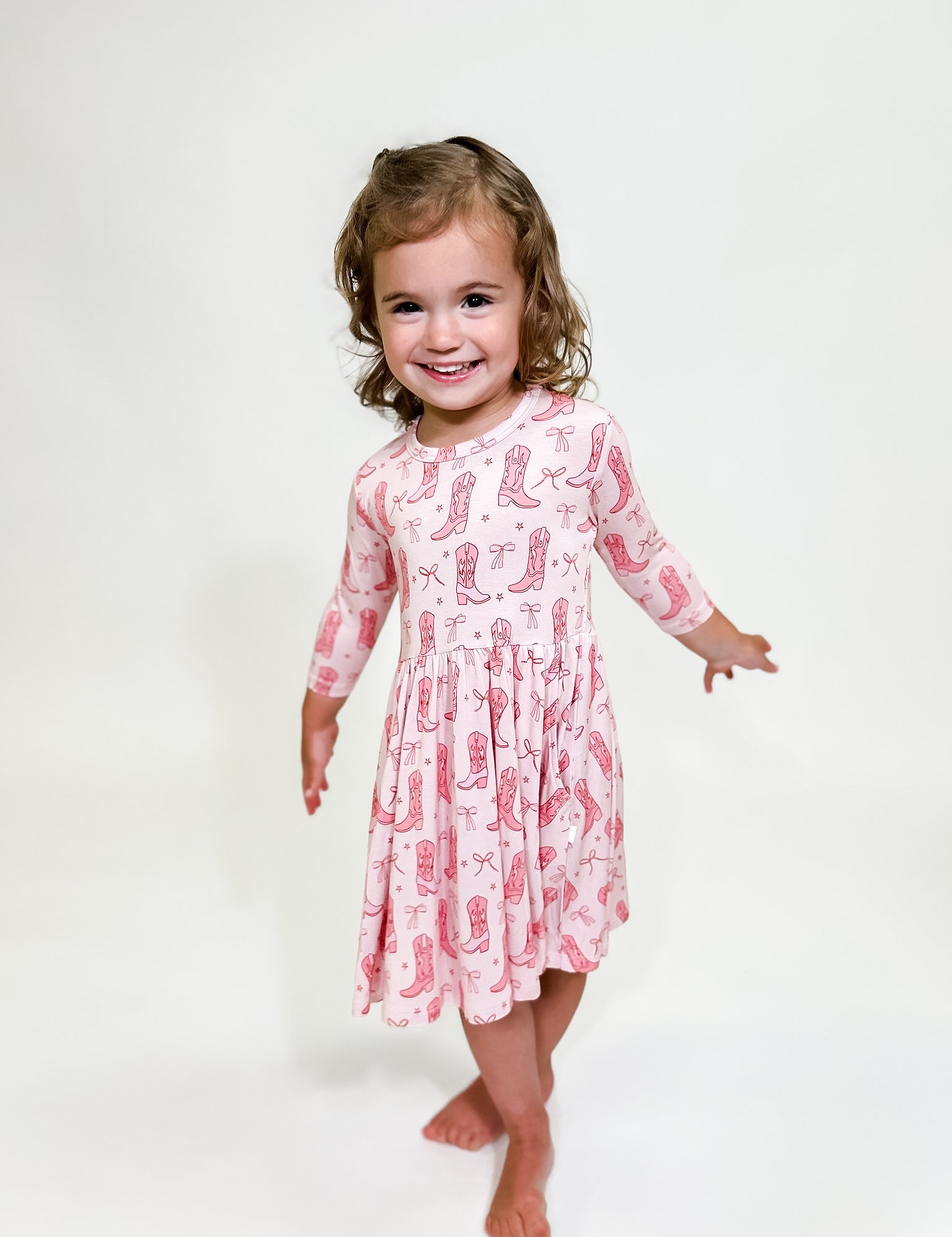 3/4 Sleeve Pocket Dress - Boots & Bows