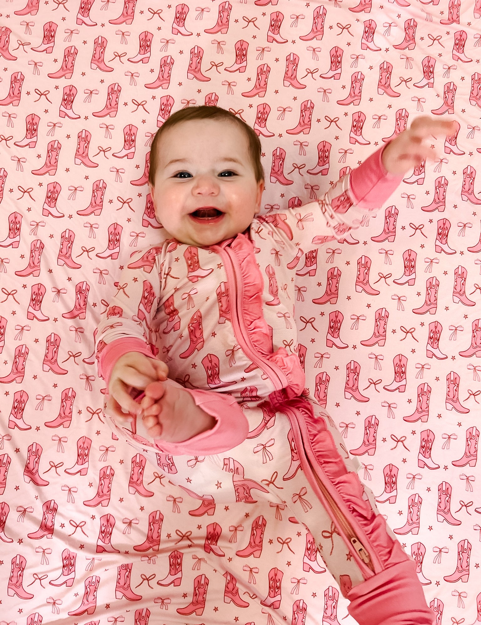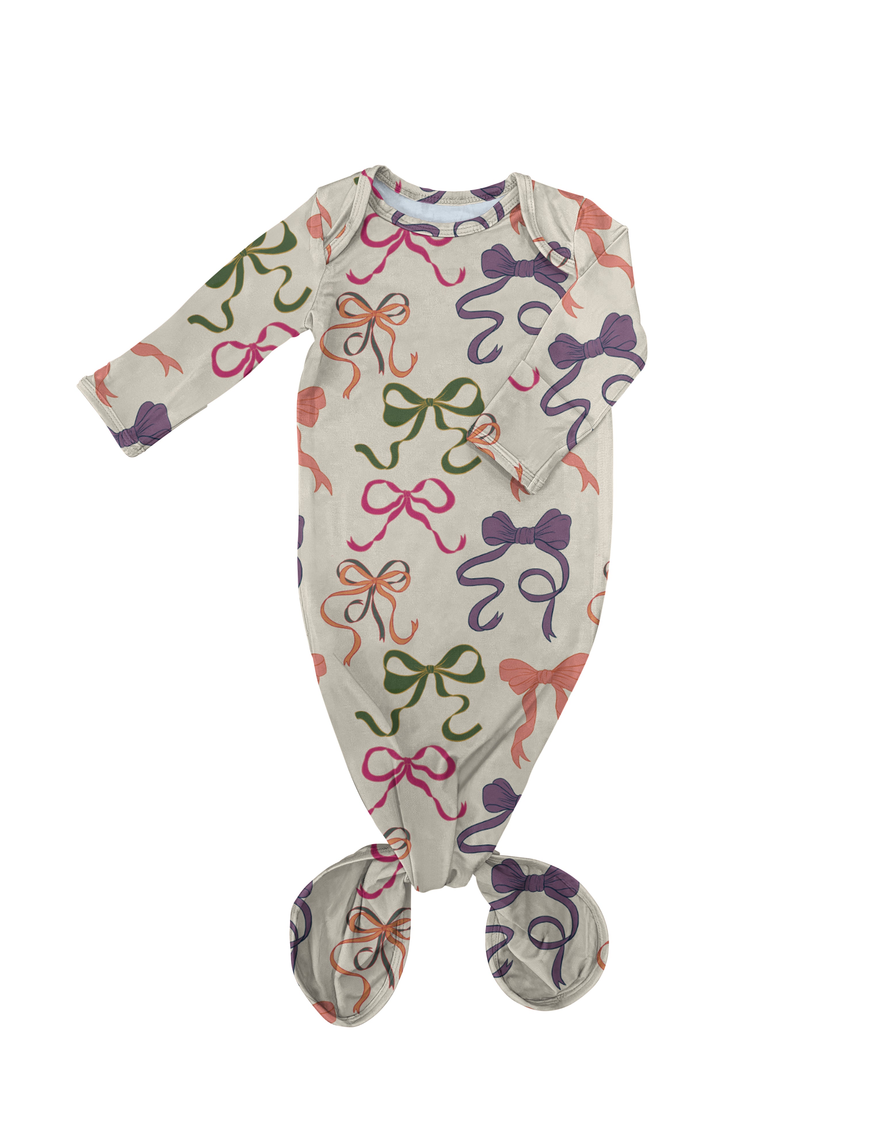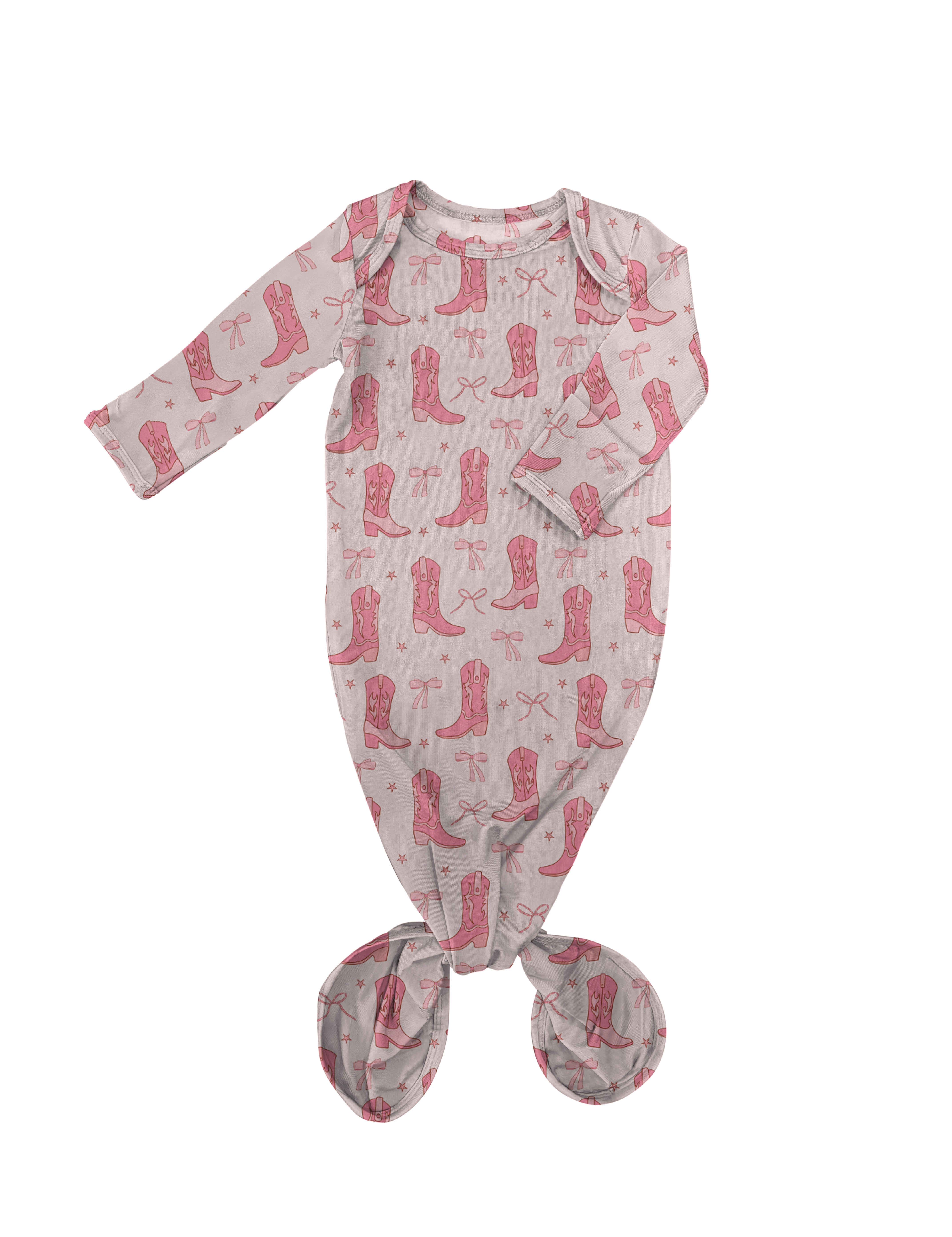 Knotted Infant Gown - Boots & Bows (0-3 mo)