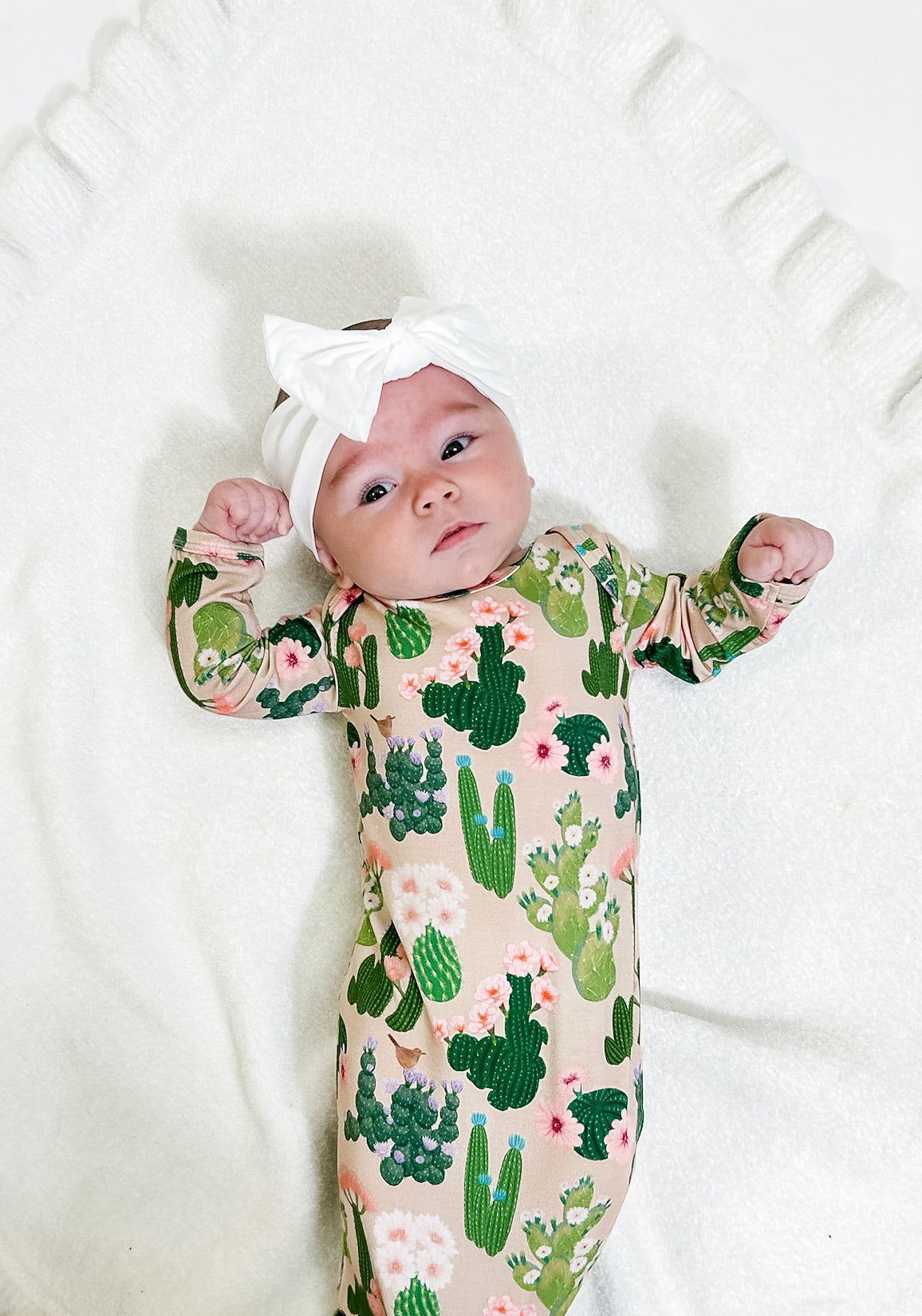 Knotted Infant Gown - Cactus Blooms (0-3 mo) FINAL SALE