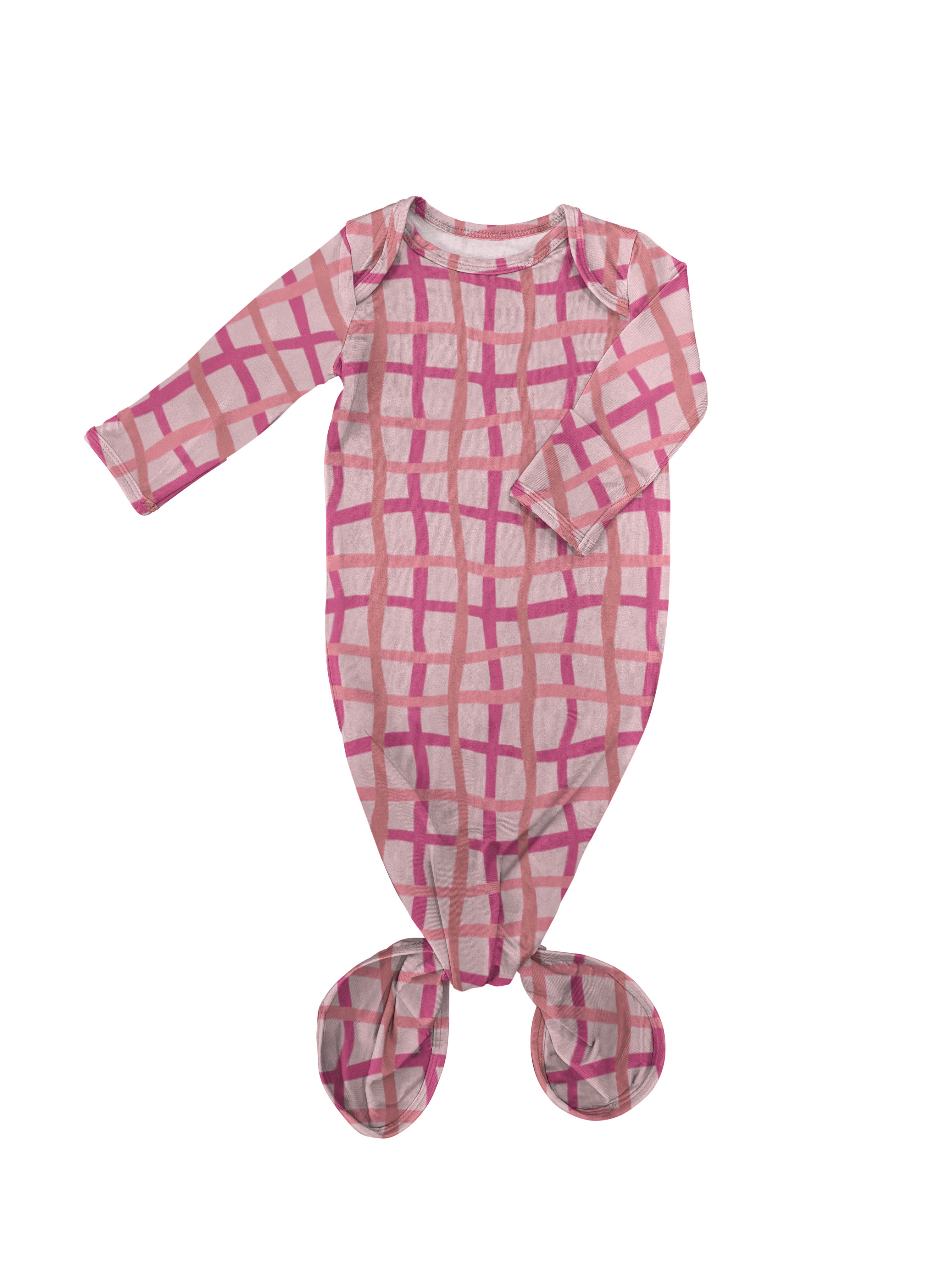 Knotted Infant Gown - Pink Wavy Plaid (FINAL SALE)