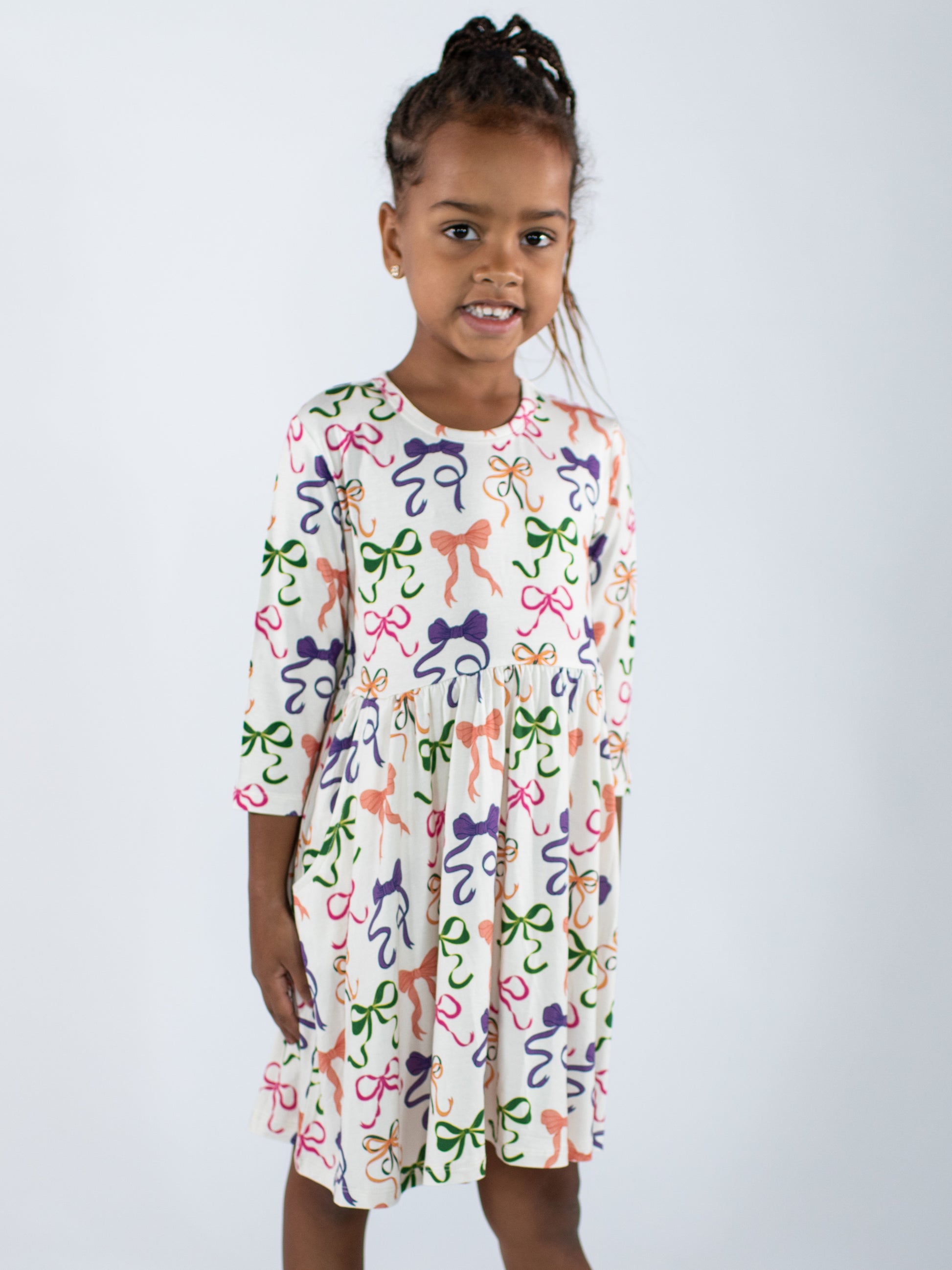 Made for comfort and play, our dresses are crafted from a premium blend of 95% bamboo and 5% spandex—giving it a silky-soft feel with just the right amount of stretch. Lightweight, breathable, and gentle on sensitive skin, it's perfect for everyday wear or special outings.