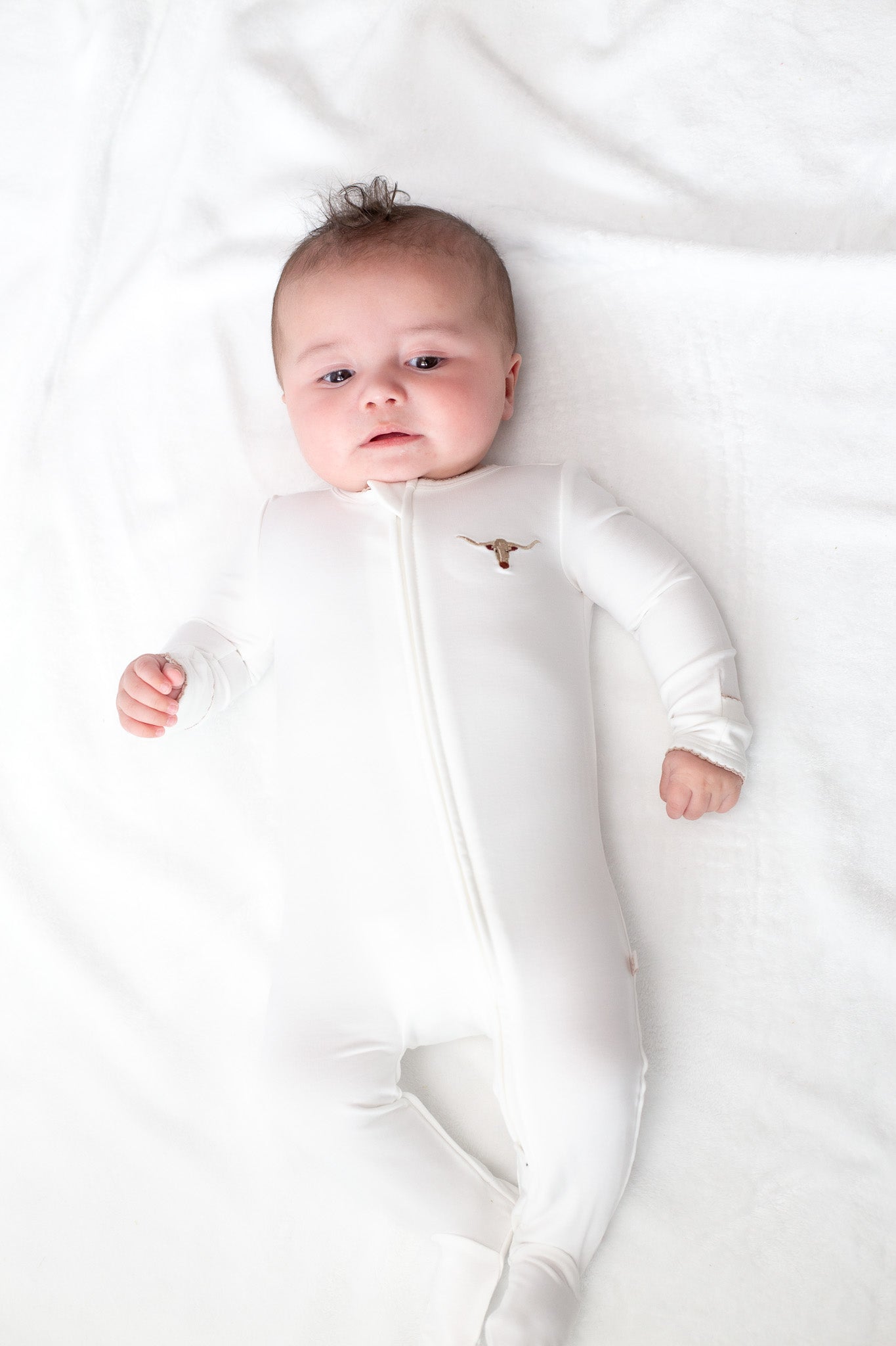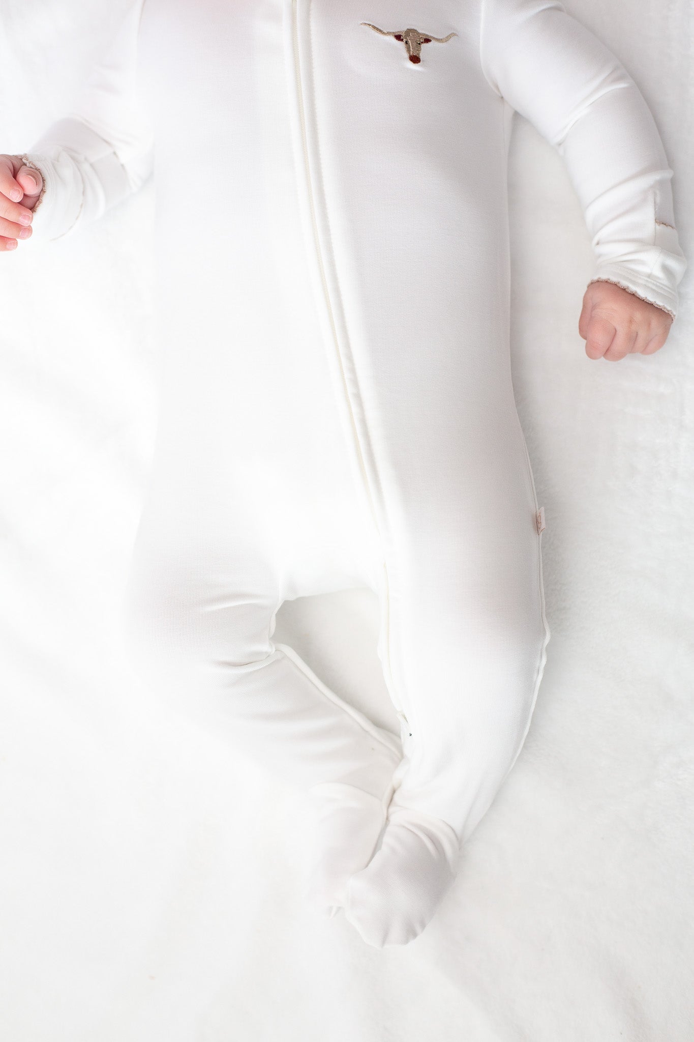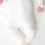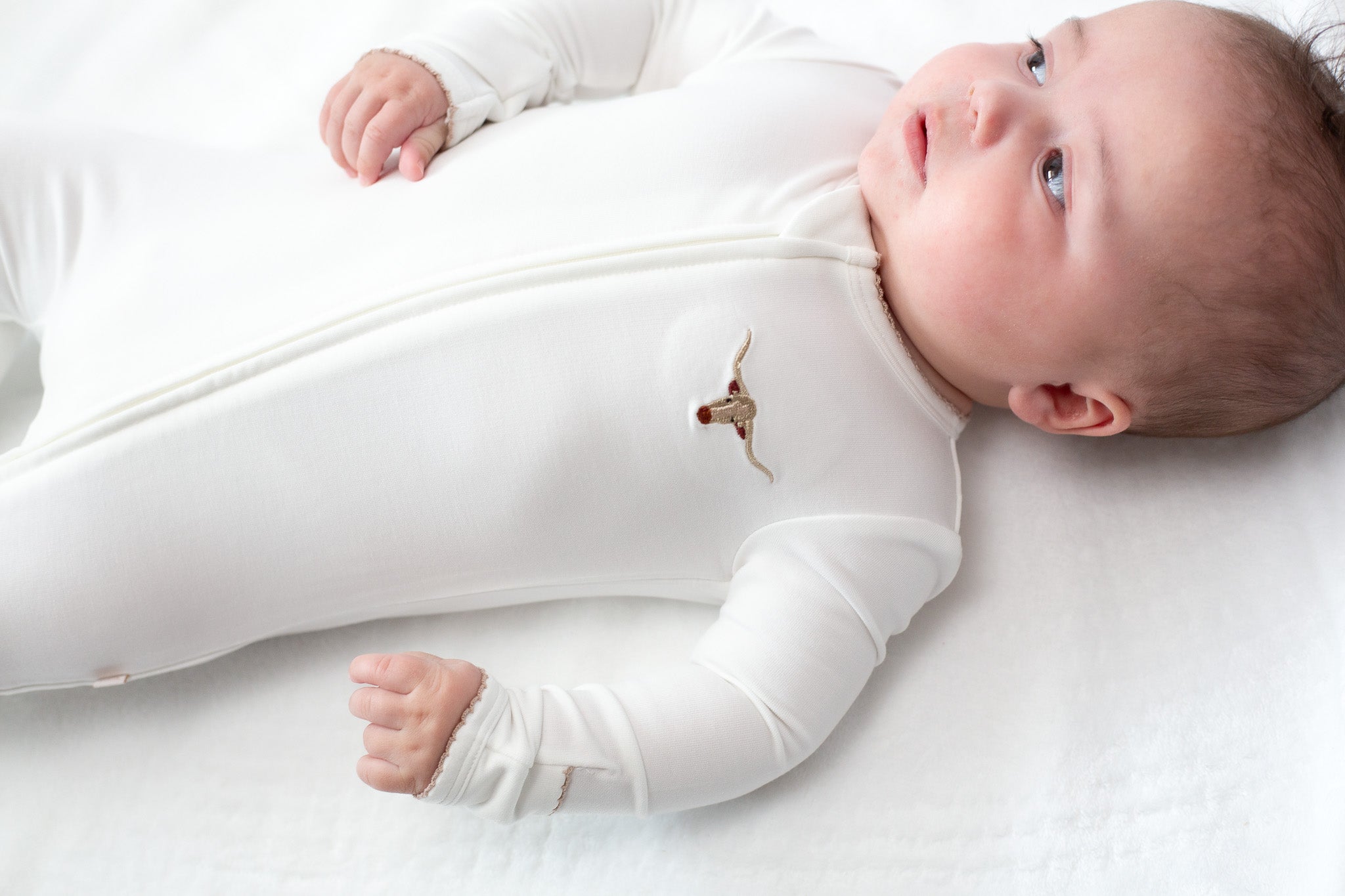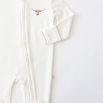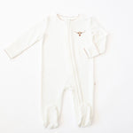 Sweet, soft, and made for snuggles 🤍 This classic white footed zip romper features the most charming embroidered detail at the chest and accented with delicate contrast picot trim along the neckline and cuffs. Designed for cozy days and peaceful nights, the smooth zip closure makes diaper changes quick and fuss-free.